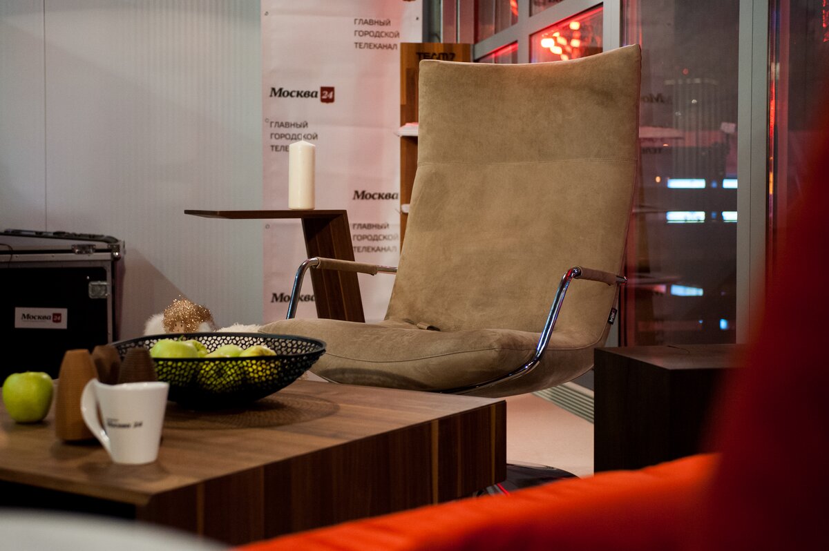 В парке Горького открылась выездная зимняя студия телеканала "Москва 24". Обустроить помещение и сделать его уютным помогли TEAM7 (австрийская мебель из массива) и BRUHL (немецкие диваны-трансформеры).