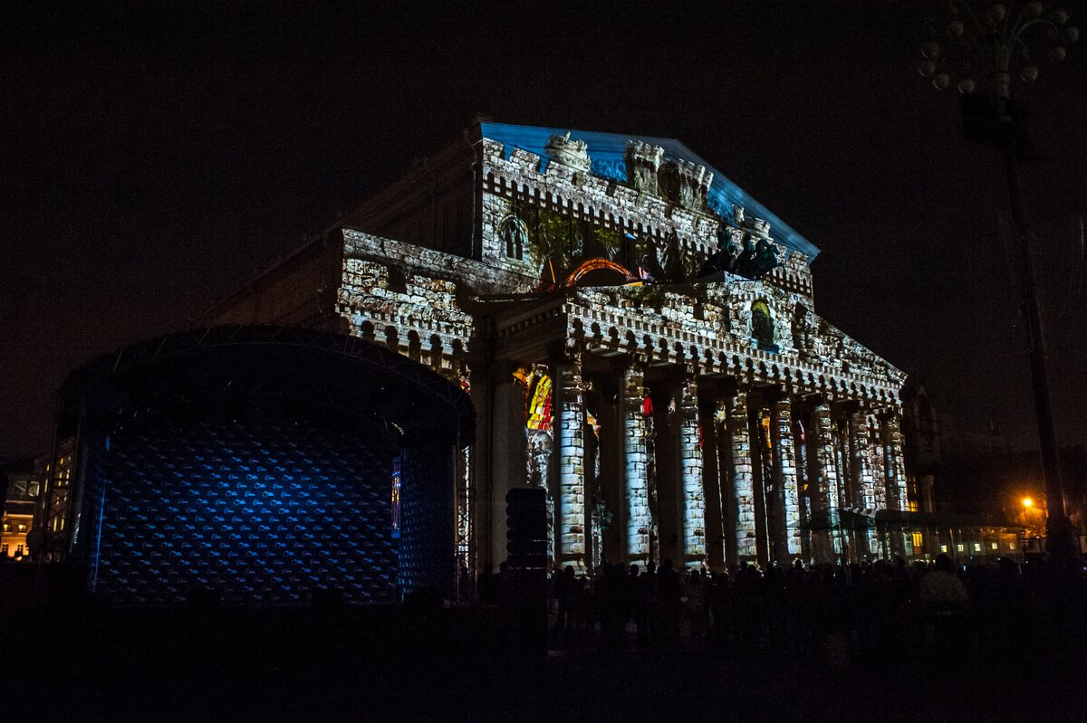 Во вторник, 14 сентября, около Большого театра состоялась церемония закрытия фестиваля "Круг света", который проходил в Москве в четвертый раз. Зрители смогли увидеть световые инсталляции на фасаде ГАБТ, а также выступление оперной певицы Любови Казарновской.