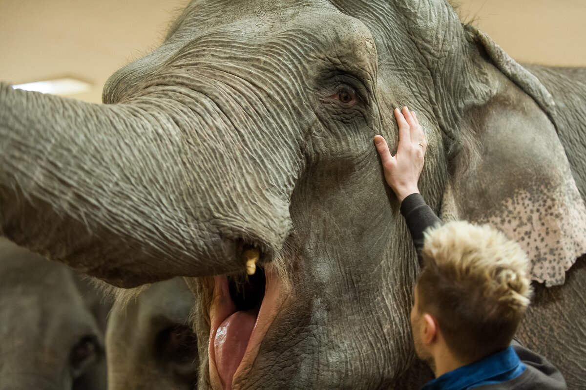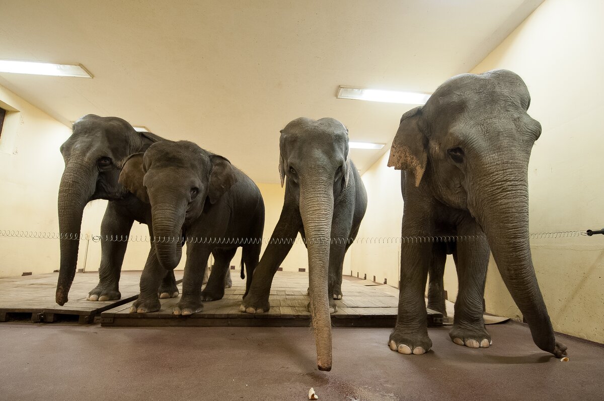 Самые большие участницы шоу "БРАВО!" – Ранго, Герда, Претти и Марго – обитают в слоновнике. В выходные и праздники они трижды в день выходят на арену, чтобы показать публике уникальные умения. Их дрессировщик Андрей Дементьев-Корнилов стал для этих животных лучшим другом.