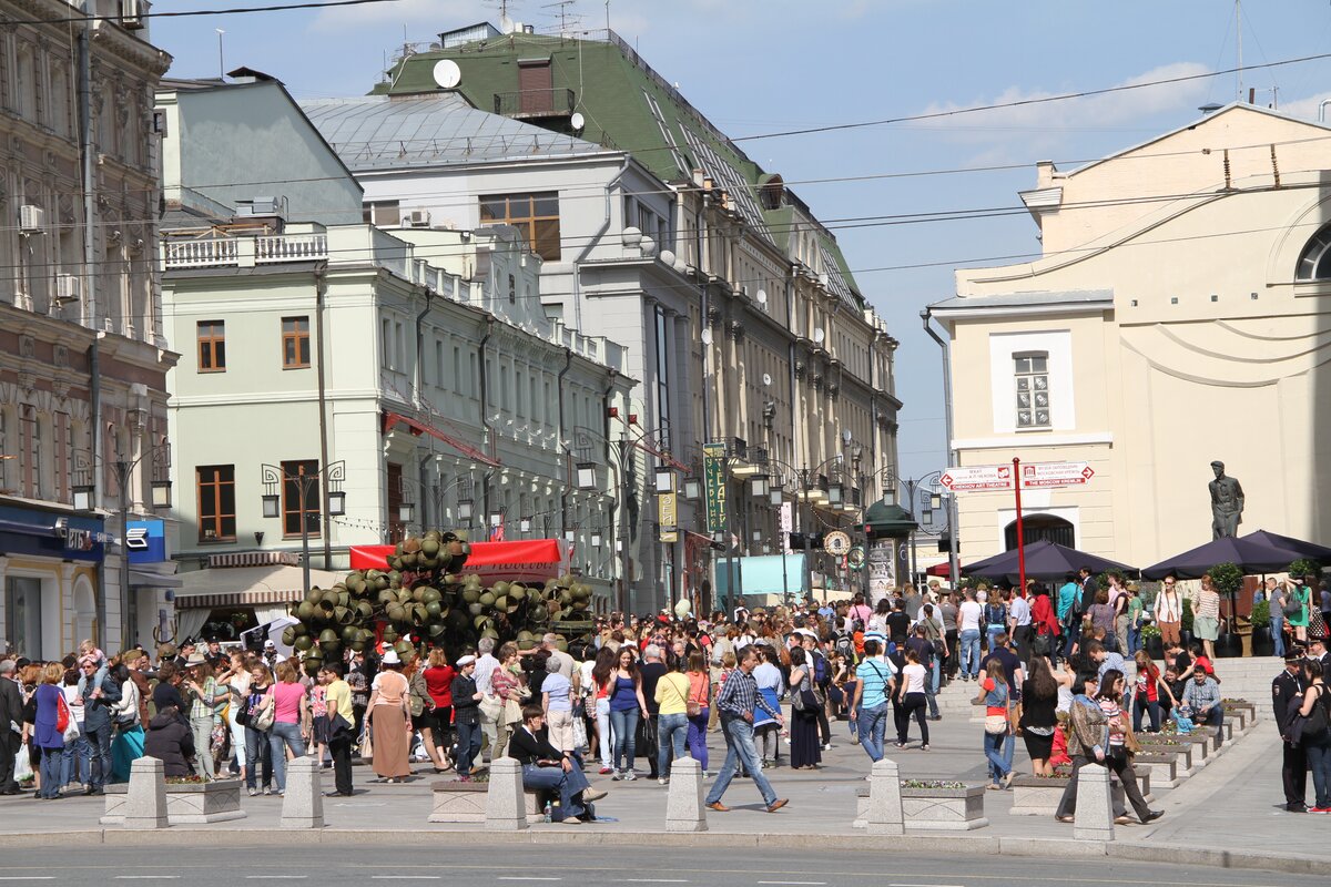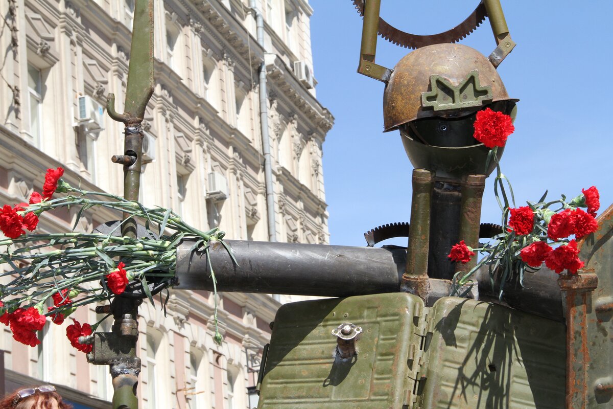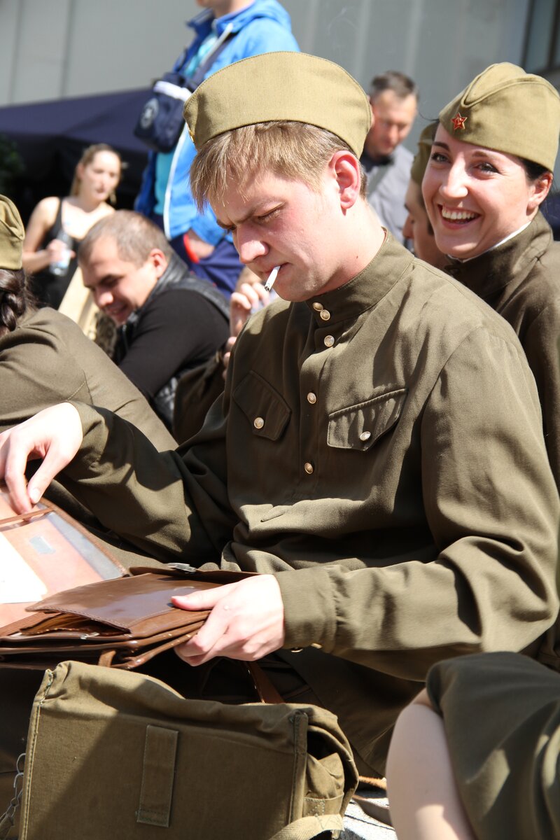 В Камергерском переулке прошли костюмированные реконструкции фронтовой жизни. Студенты творческих вузов разыгрывали сценки, звучали стихи о войне, отрывки документальной и художественной прозы, военные песни. Стать участником представления и присоединиться к актерам мог каждый зритель. Кроме того к празднику в переулке появились инсталляция "Яблоневый сад" и "Живые картины фронтовой жизни".