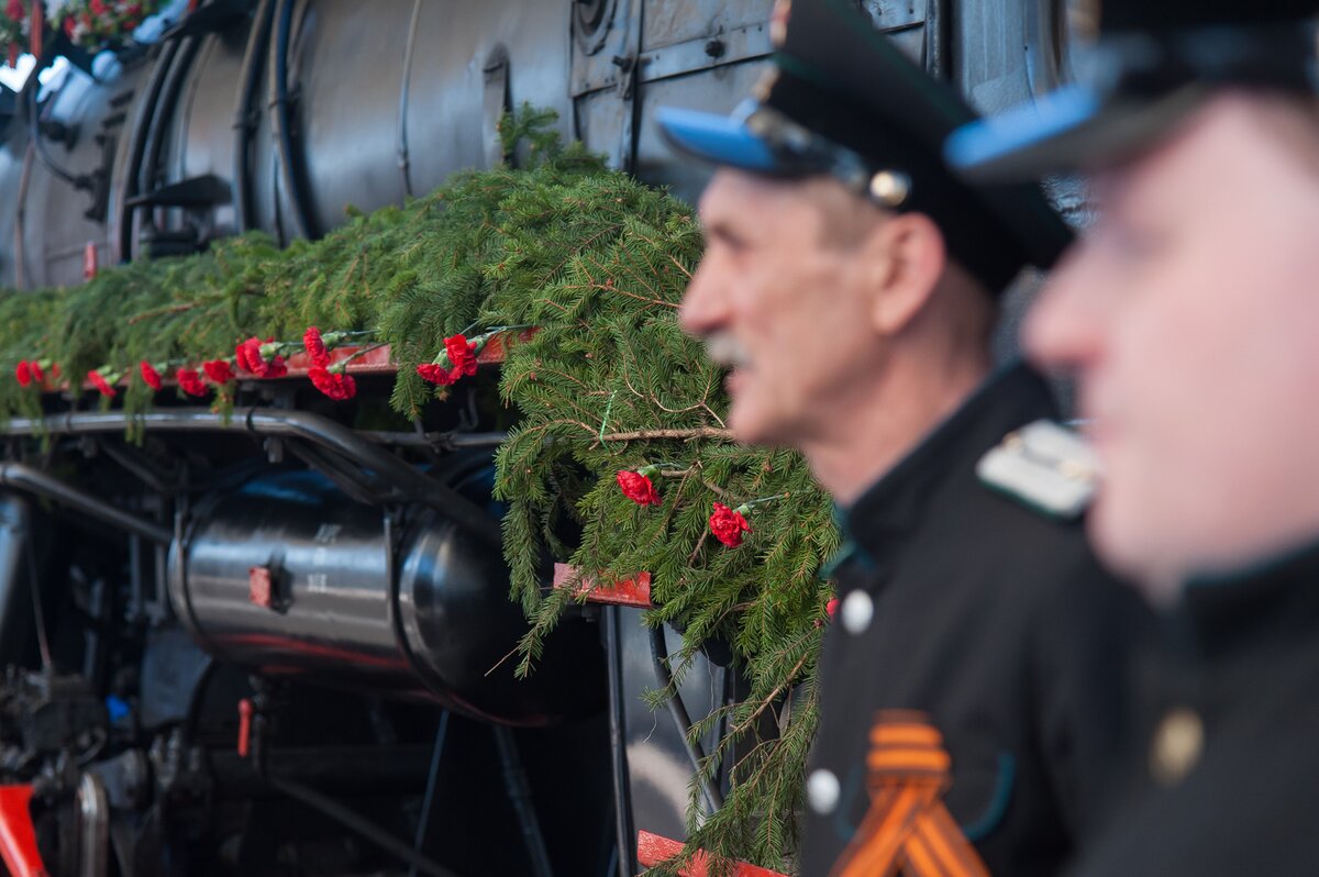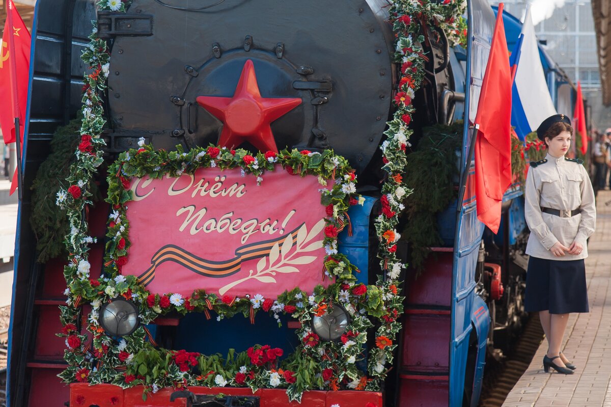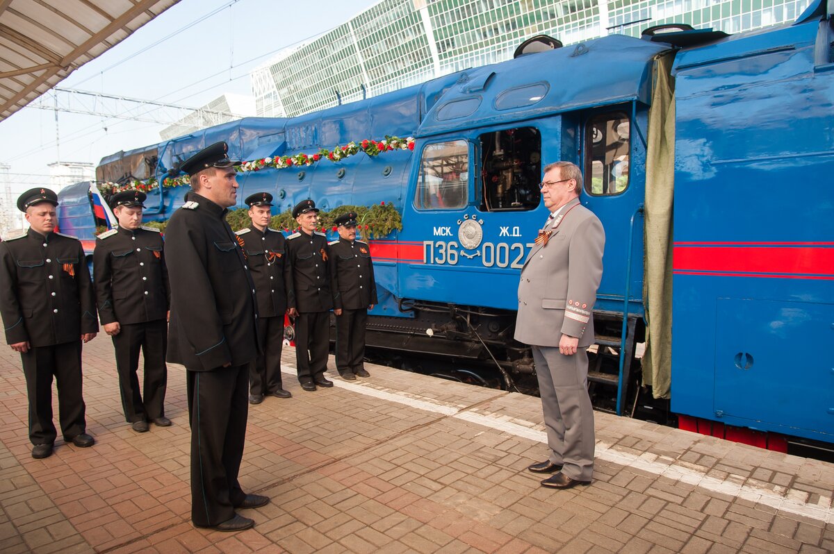 В День Победы по Москве и Московской области в торжественную поездку отправился "Поезд Победы". Пассажирами ретропоезда стали ветераны Великой Отечественной войны и железнодорожного транспорта, труженики тыла.