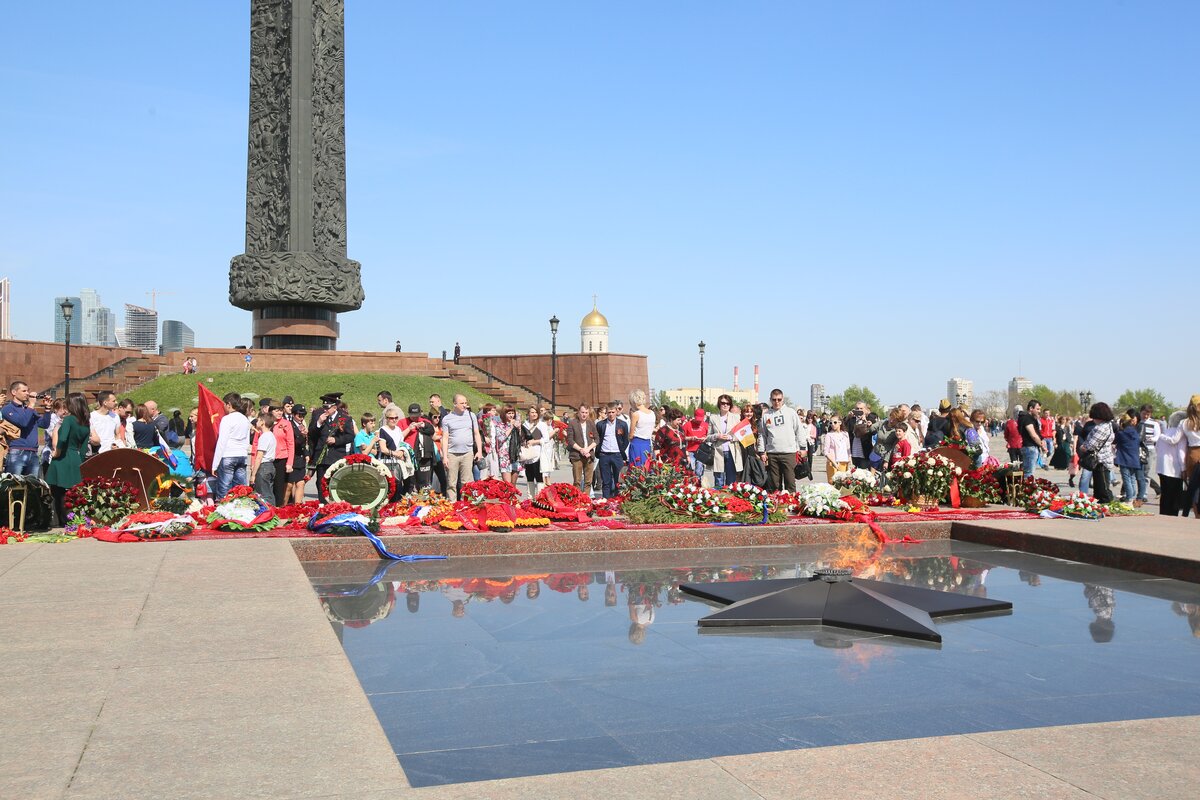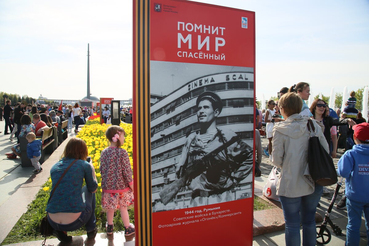 В День Победы на Поклонной горе прошли праздничные гуляния. Организаторы подготовили программу с ярмарками, мастер-классами и тематическими сувенирами. Гости парка смогли посмотреть прямую трансляцию праздничного парада на Красной площади.