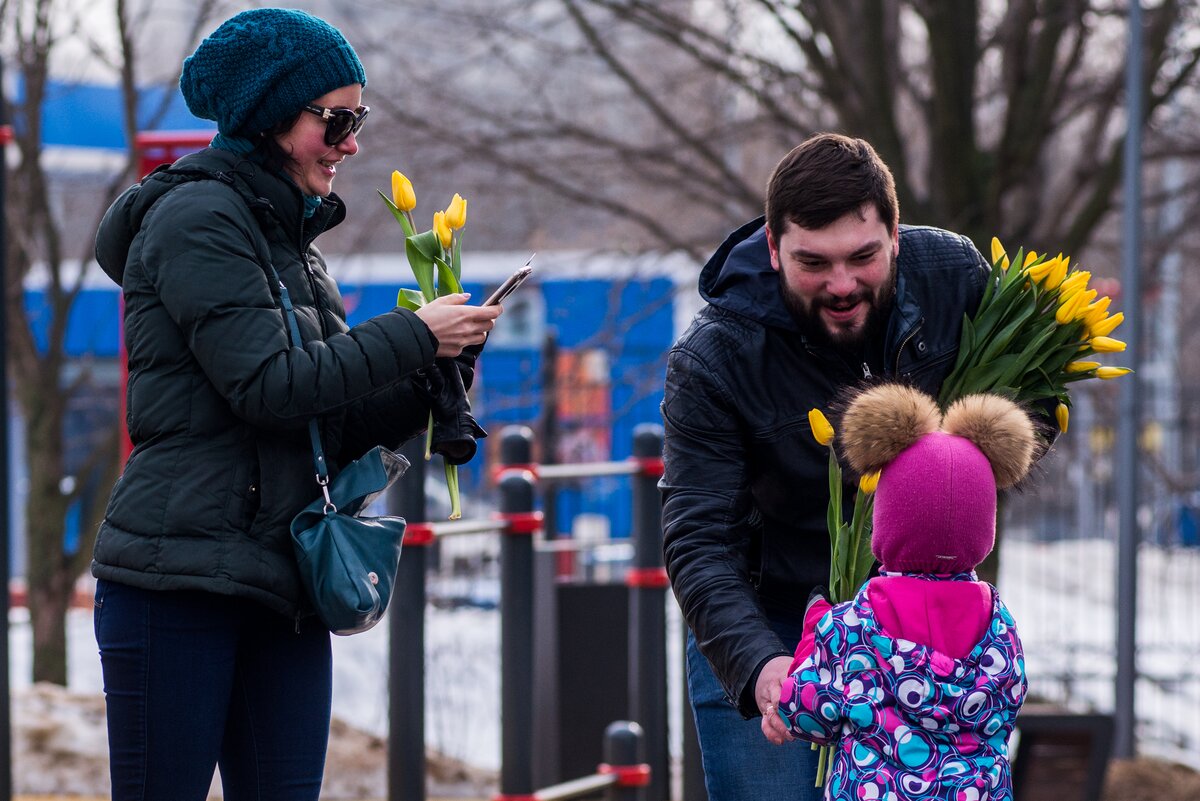 В Международный женский день парк "Фили" третий год подряд организовывает традиционное спортивное-развлекательное мероприятие — "Цветочный забег". Всем мужчинам предложили принять участие в двухкилометровом марафоне по территории парка с букетами тюльпанов в руках. Цель забега – подарить цветы каждой представительнице прекрасного пола, которая встретится по пути. Параллельно с Филевским парком, такой забег прошел и в парке "Олимпийской деревни".