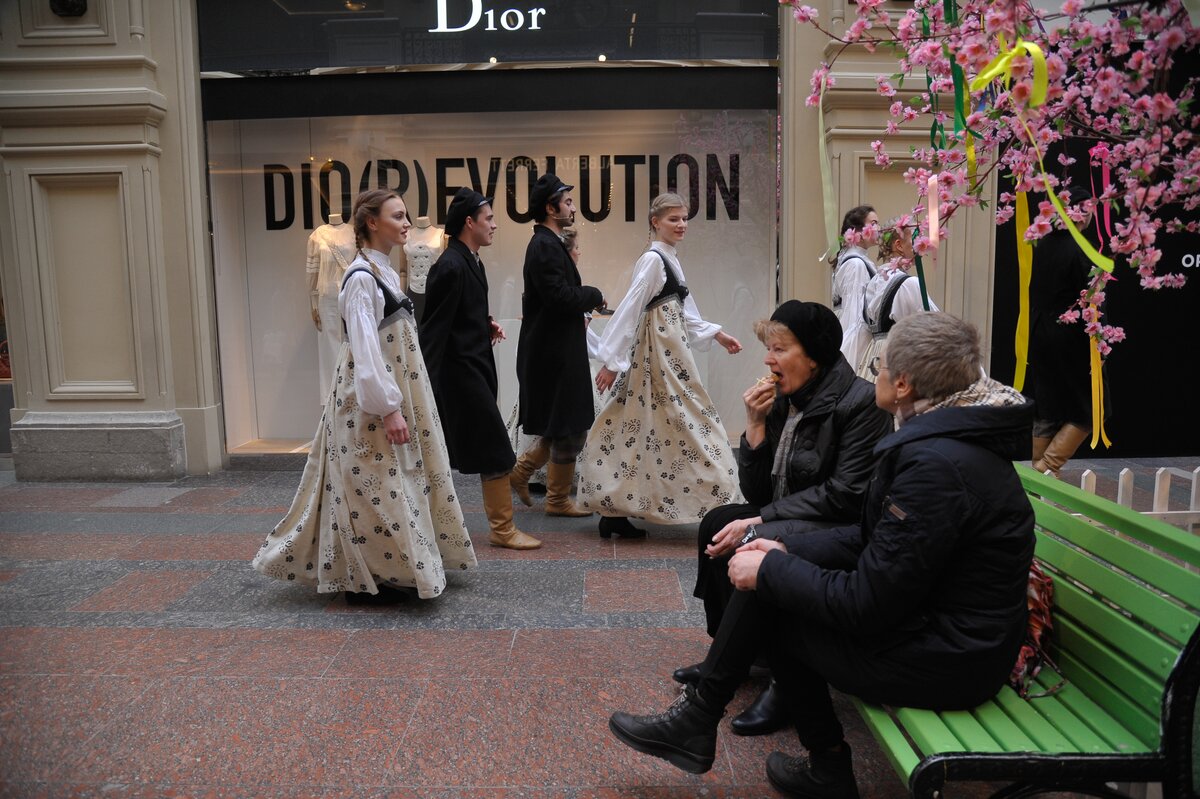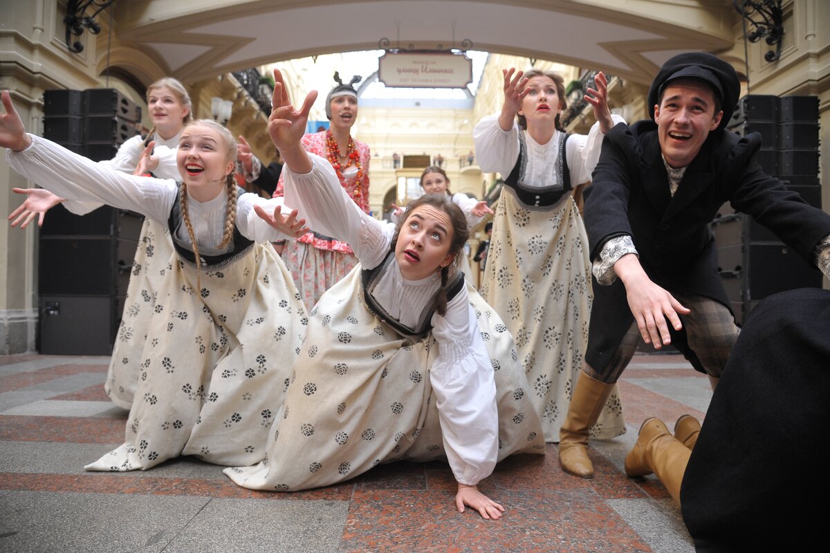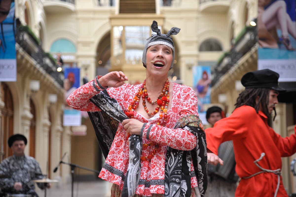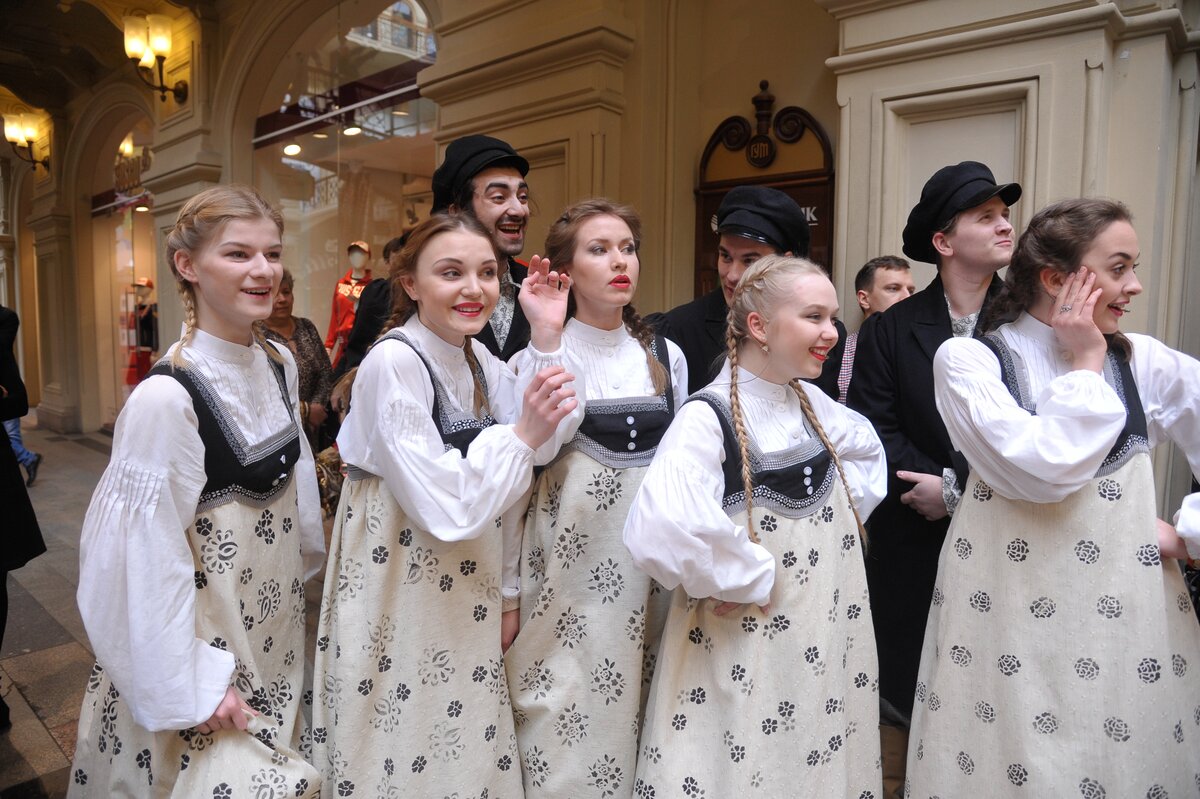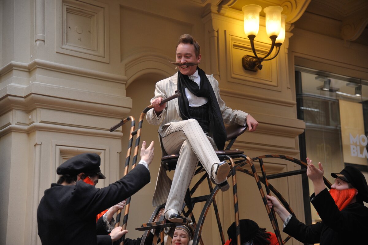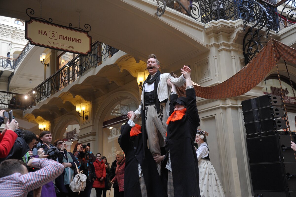 5 апреля в рамках "Золотой Маски в городе" в ГУМе выступила группа артистов Пермского Театра-Театра. Были исполнены несколько музыкальных номеров из спектакля "На всякого мудреца довольно простоты". В программе этого эпизода также очередной перформанс артистов компании "Яркие люди".