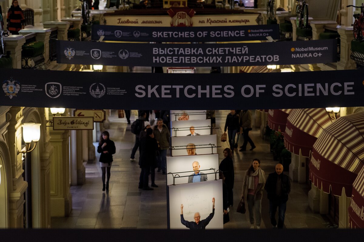 21 октября в рамках фестиваля NAUKA0+ на 3-й линии ГУМа открылась интерактивная выставка "Скетчи науки". Это знаменитые фотосессии нобелевских лауреатов, выполненные известным фотографом Волкером Стегером и собранные в Нобелевском музее.