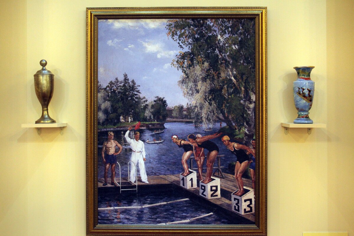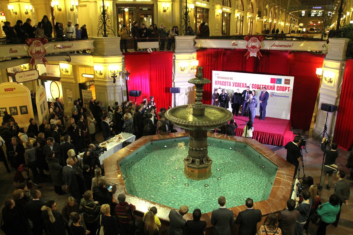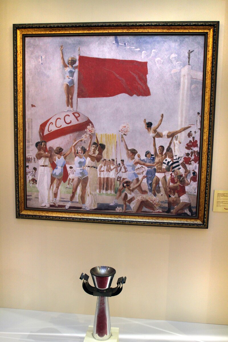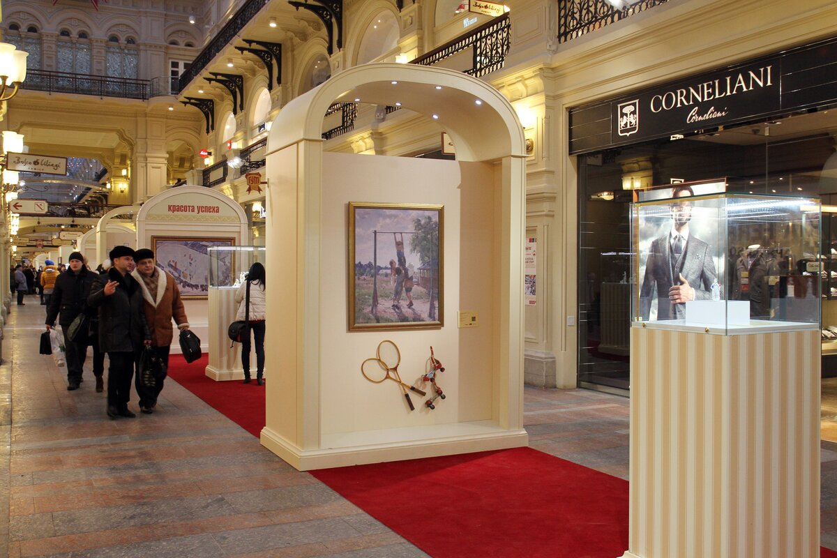 В ГУМе, в рамках фестиваля "Черешневый лес", открылась выставка, посвященная советскому спорту - "Красота успеха". На ней представлены картины и рисунки, рассказывающие о развитии отечественного спортивного движения в недалеком прошлом. Полотна распечатаны на виниловом холсте.