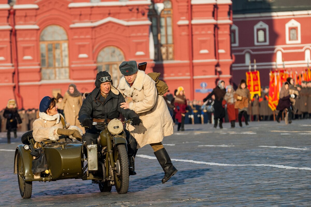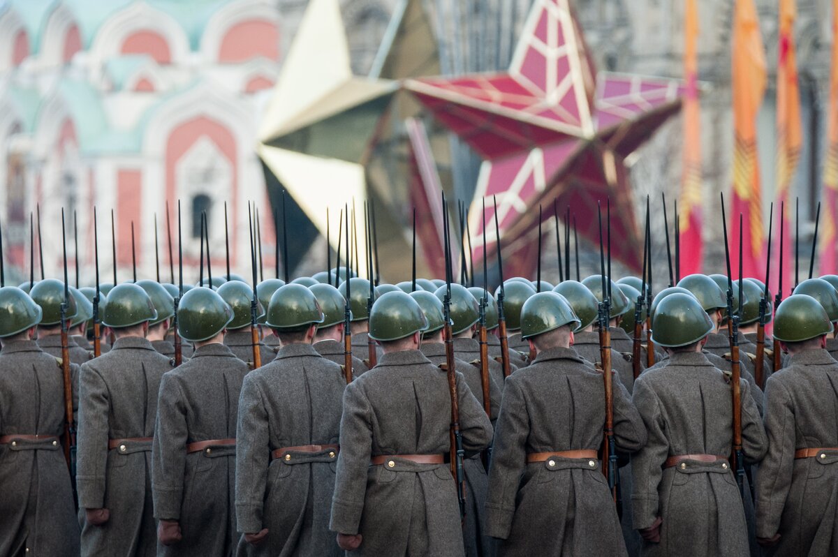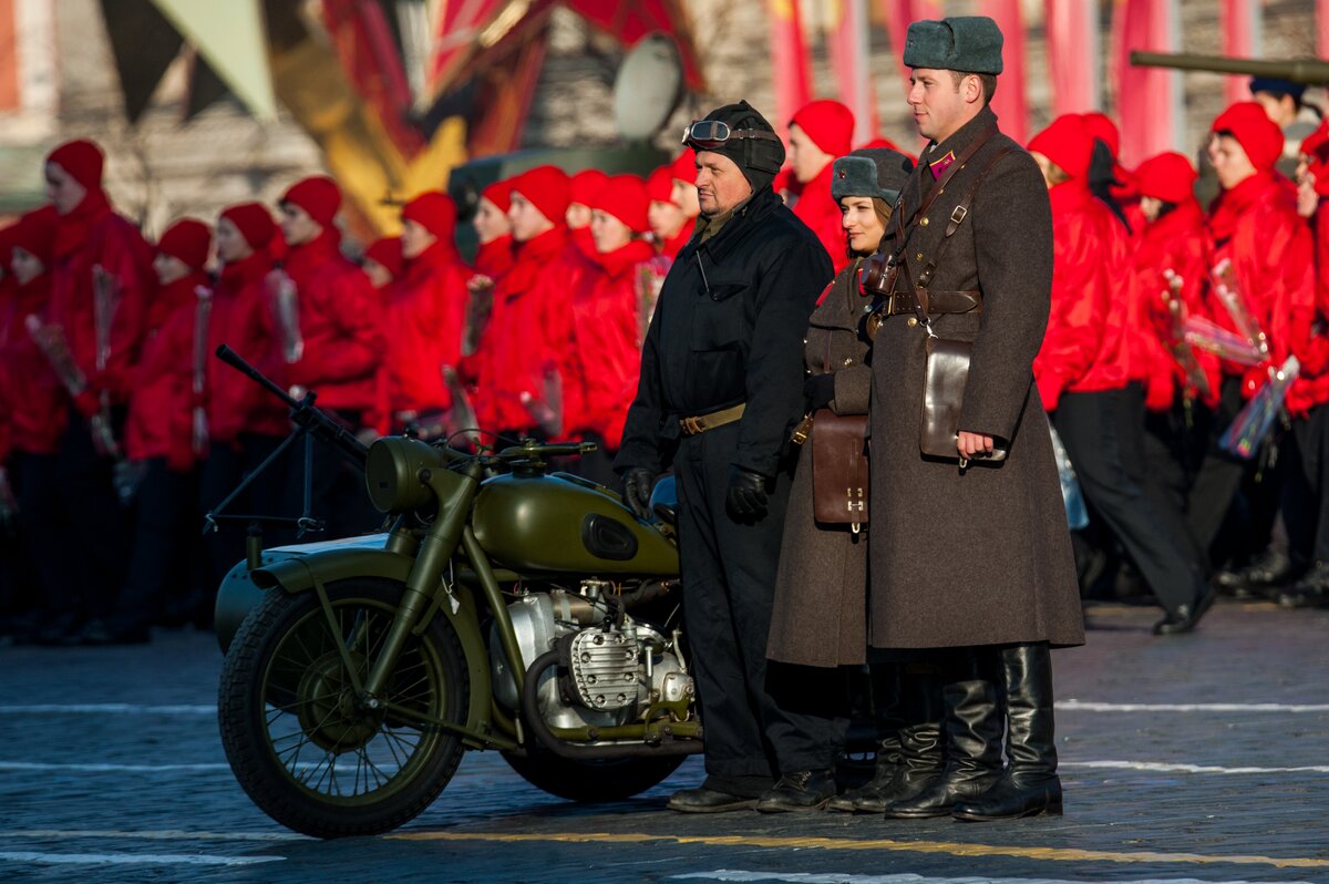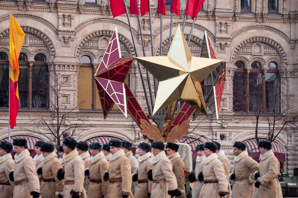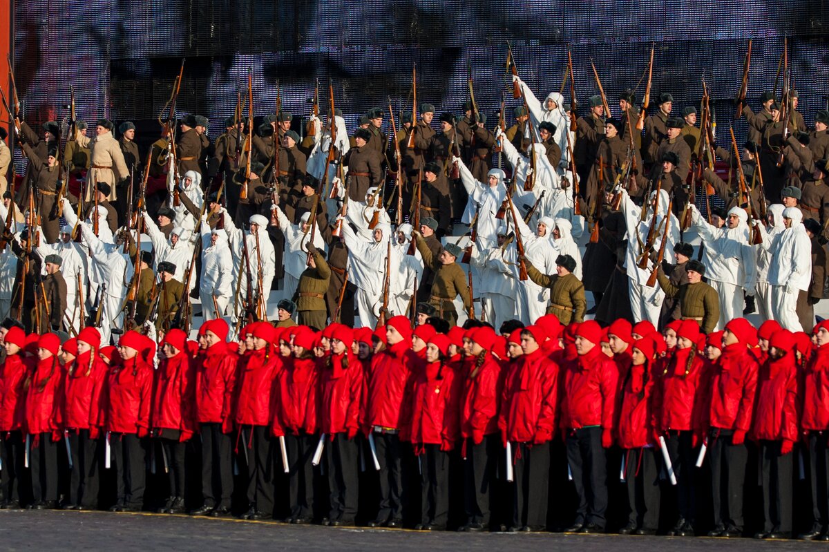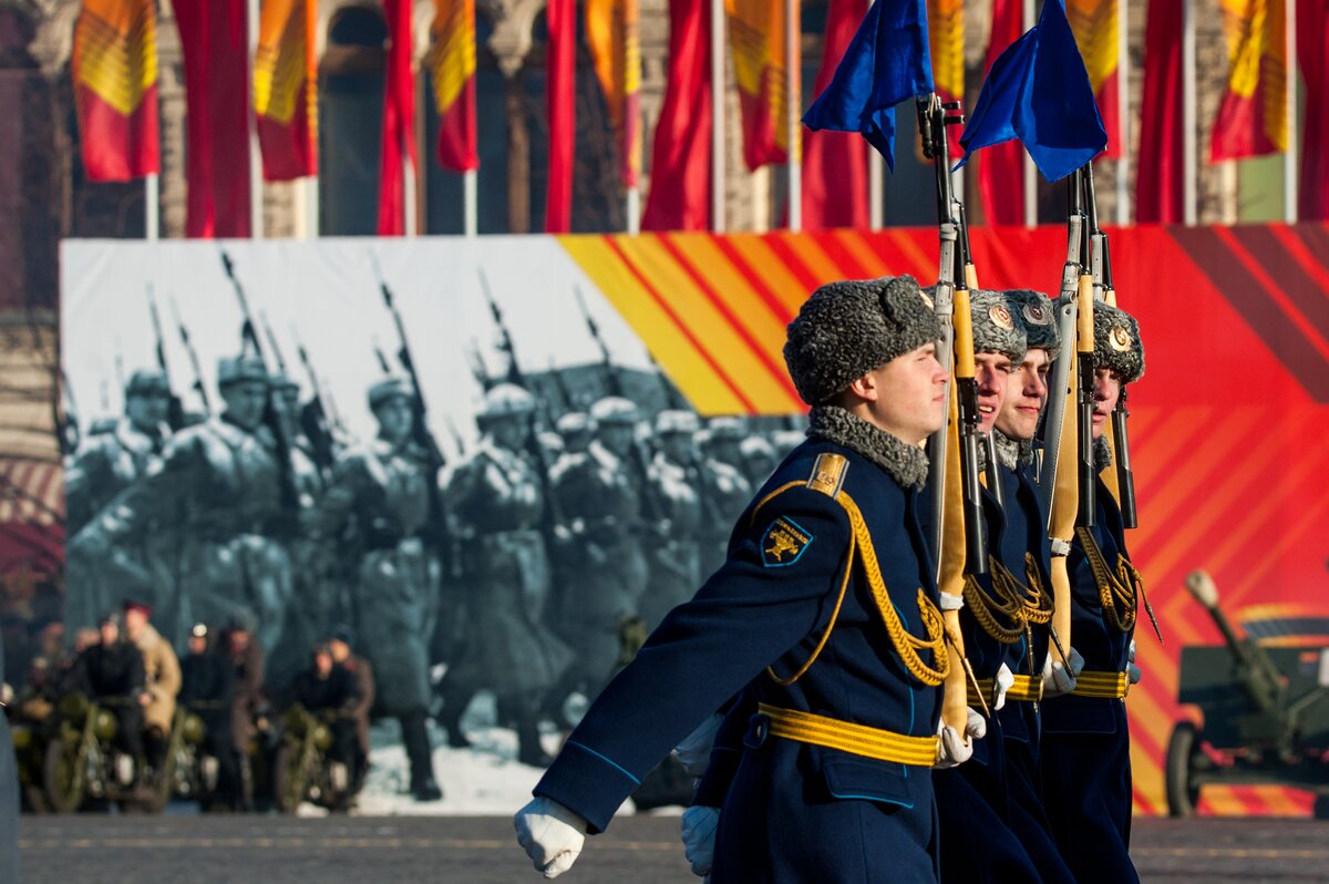 На Красной площади прошел торжественный марш, посвященный параду 7 ноября 1941 года. В нем приняли участие 45 военных расчетов, военнослужащие вооруженных сил РФ, кавалерийская группа президентского полка ФСО России в форме 1941 года.