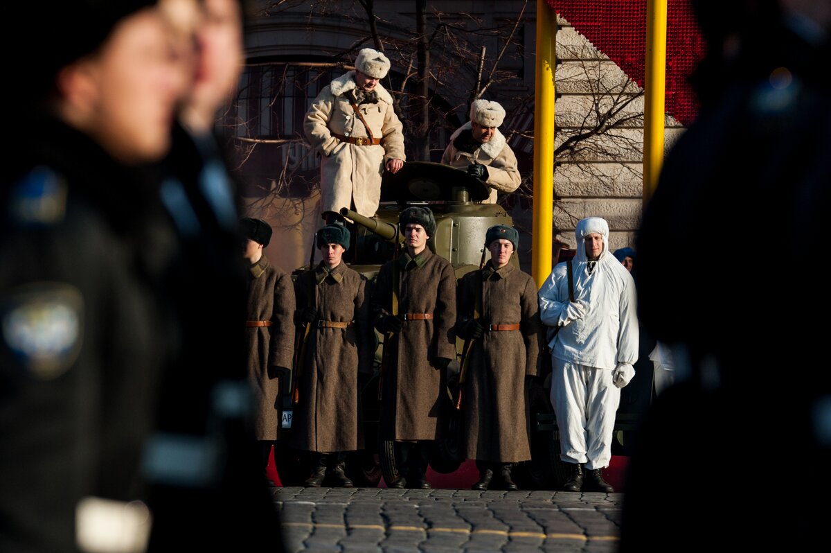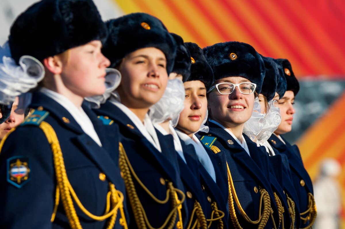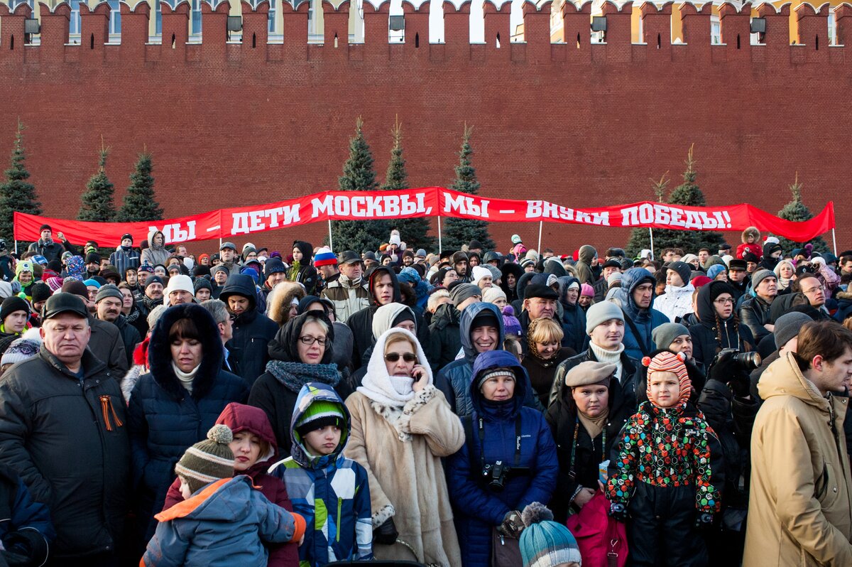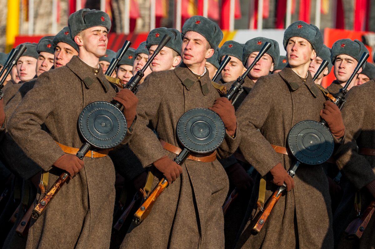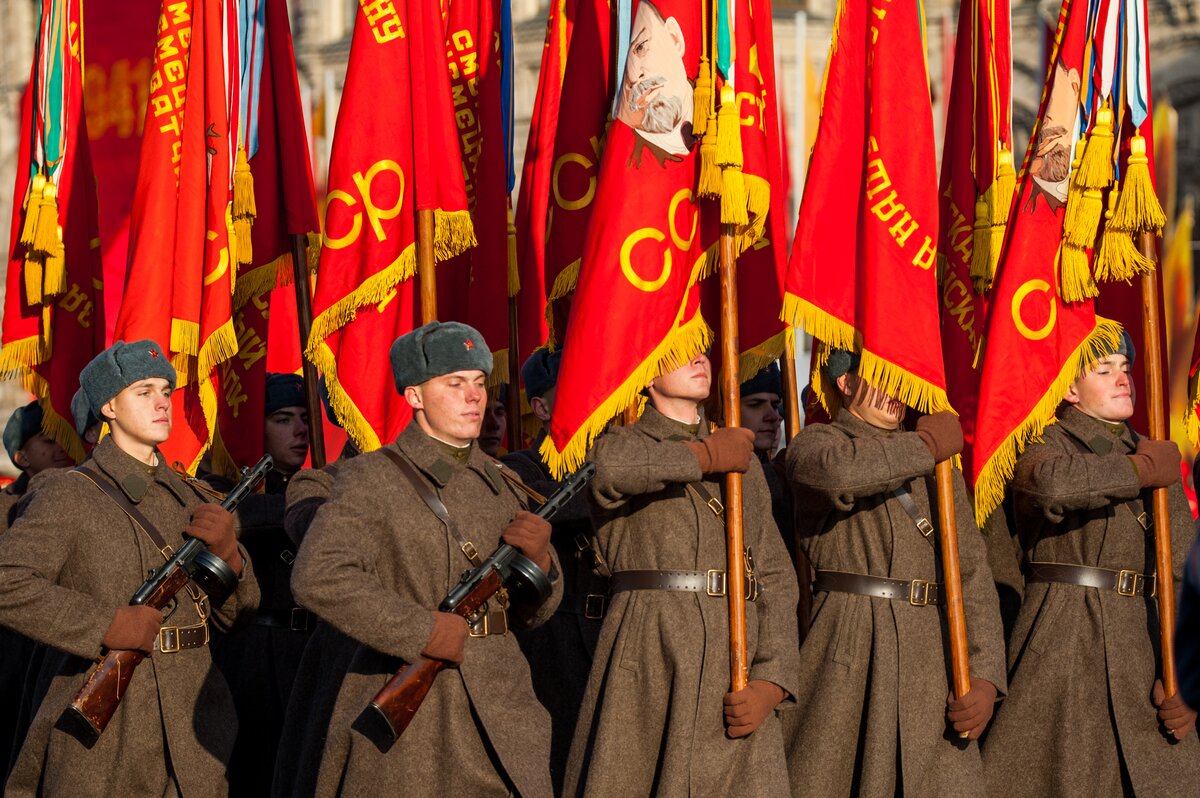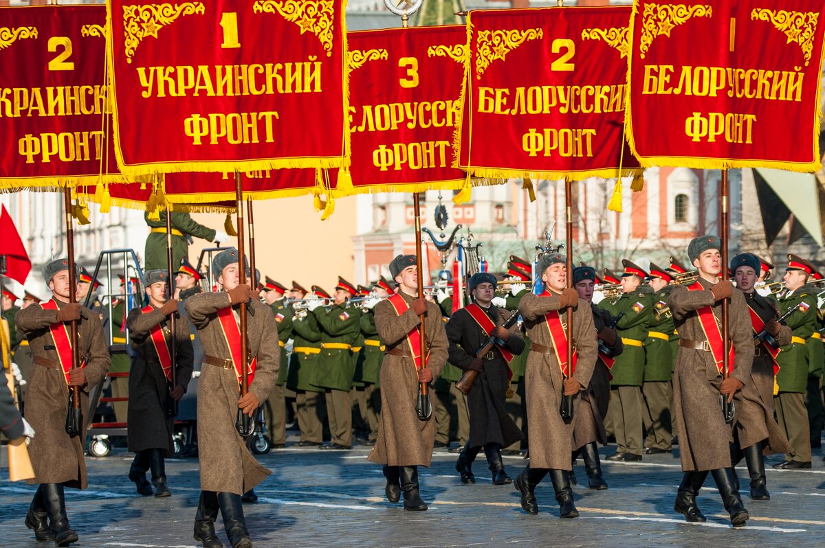 На Красной площади прошел торжественный марш, посвященный параду 7 ноября 1941 года. В нем приняли участие 45 военных расчетов, военнослужащие вооруженных сил РФ, кавалерийская группа президентского полка ФСО России в форме 1941 года.