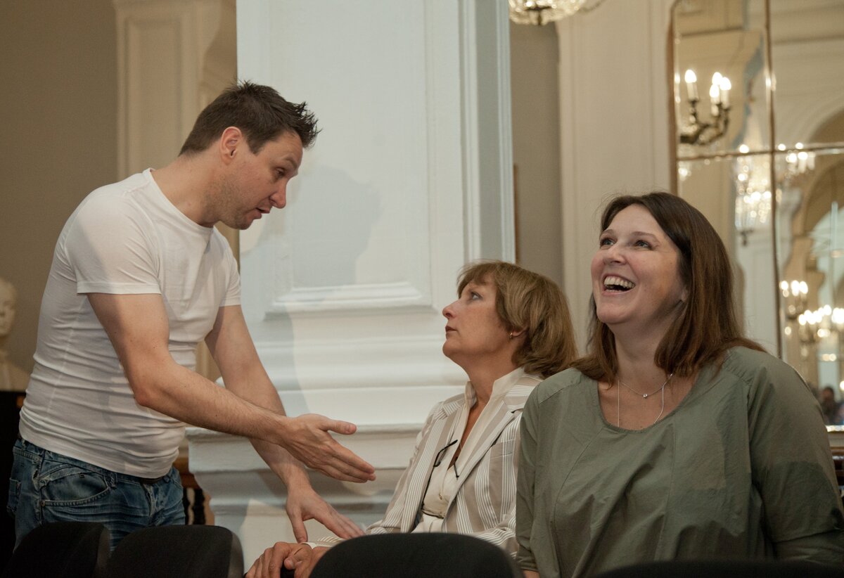 2 сентября в историческом здании Театра имени Владимира Маяковского состоялся сбор труппы, посвященный открытию 93 сезона. За время отпуска в театре сделали ремонт малого зала в историческом здании, отремонтировали буфет и купили в него новую мебель, рассказал артистам директор театра Леонид Ошарин.