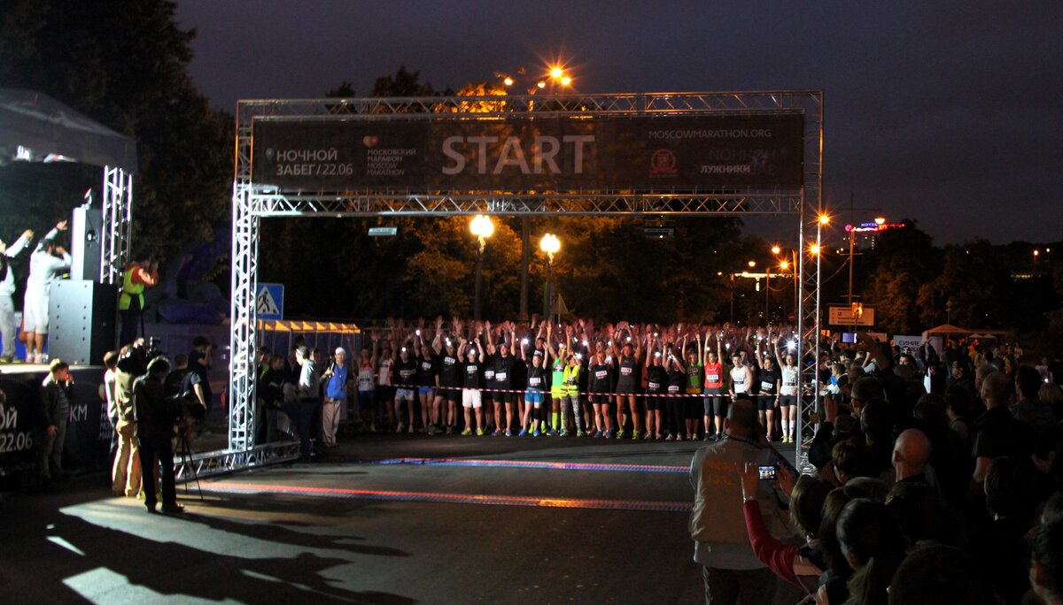 22 июня на Лужнецкой набережной состоялся третий по счету ночной забег Московского марафона на 10 километров. Всем участникам выдали футболки со светоотражающими светящимися номерами, фонарики и браслеты.