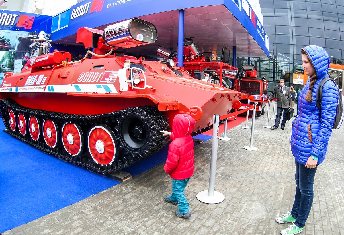 В Москве на ВДНХ открылся XVIII Международный салон "Комплексная безопасность-2015". В павильонах выставки разместили экспонаты новейших образцов техники, используемой во время ликвидации чрезвычайных ситуаций.