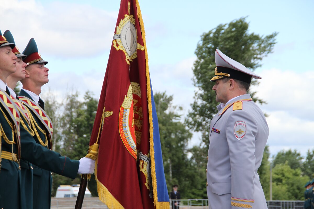 Символ верности столичной полиции пронесли перед строем. Позже его поместят на хранение в музей органов внутренних дел Москвы.