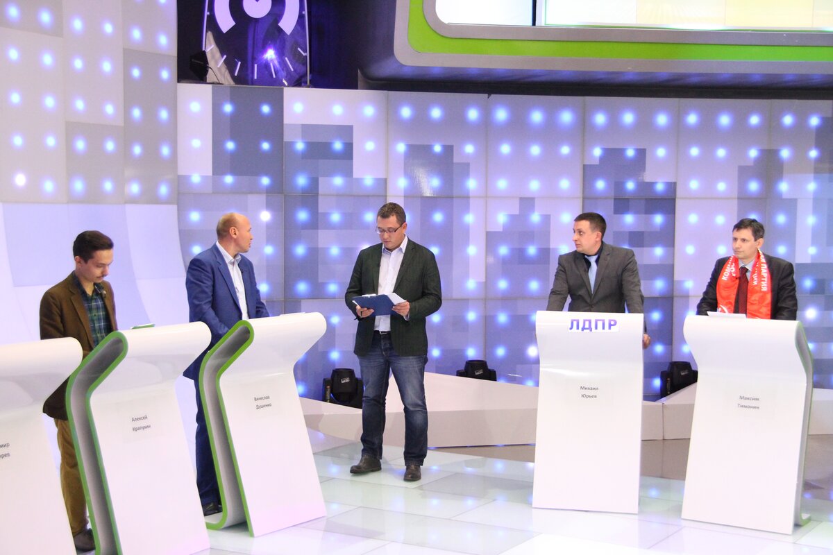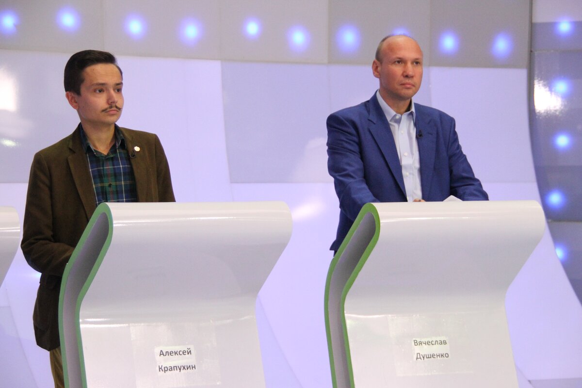 Участие в предвыборных дебатах приняли Михаил Юрьев (ЛДПР), Вячеслав Душенко ("Справедливая Россия"), Максим Тимонин (КПРФ), Алексей Крапухин ("Яблоко").