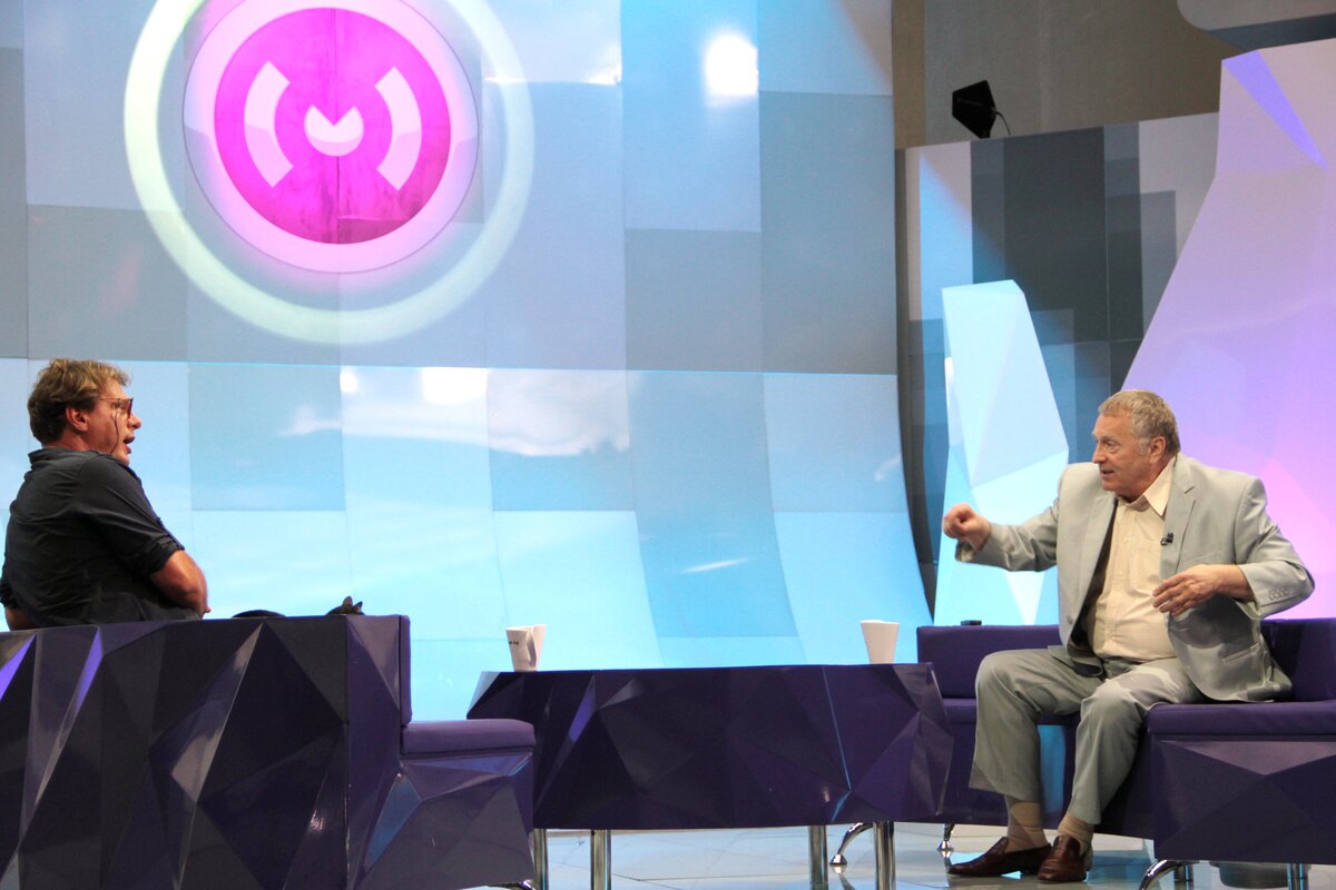 В гостях у Евгения Додолева председатель ЛДПР Владимир Жириновский. Политик дискутирует на тему животных, курения, путча, Горбачева, Сноудена, мигрантов и т.д.
