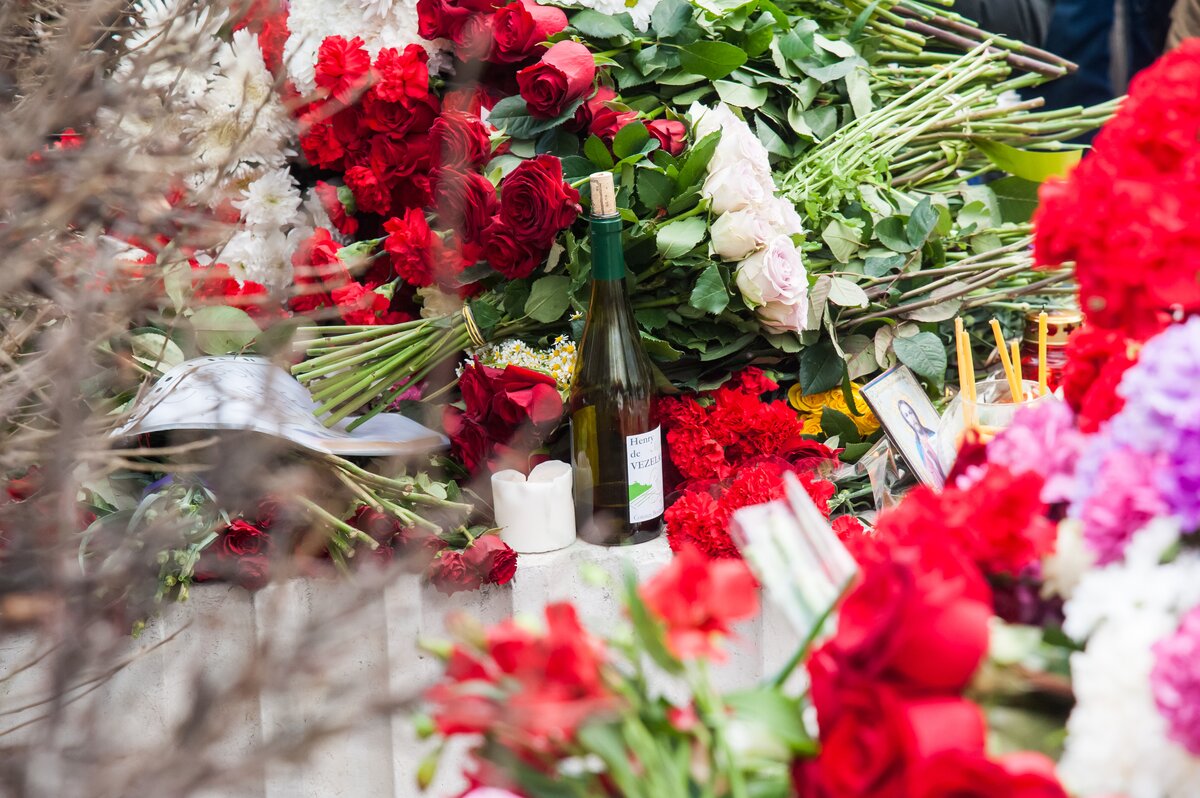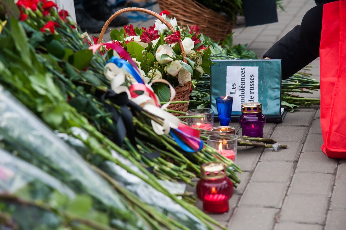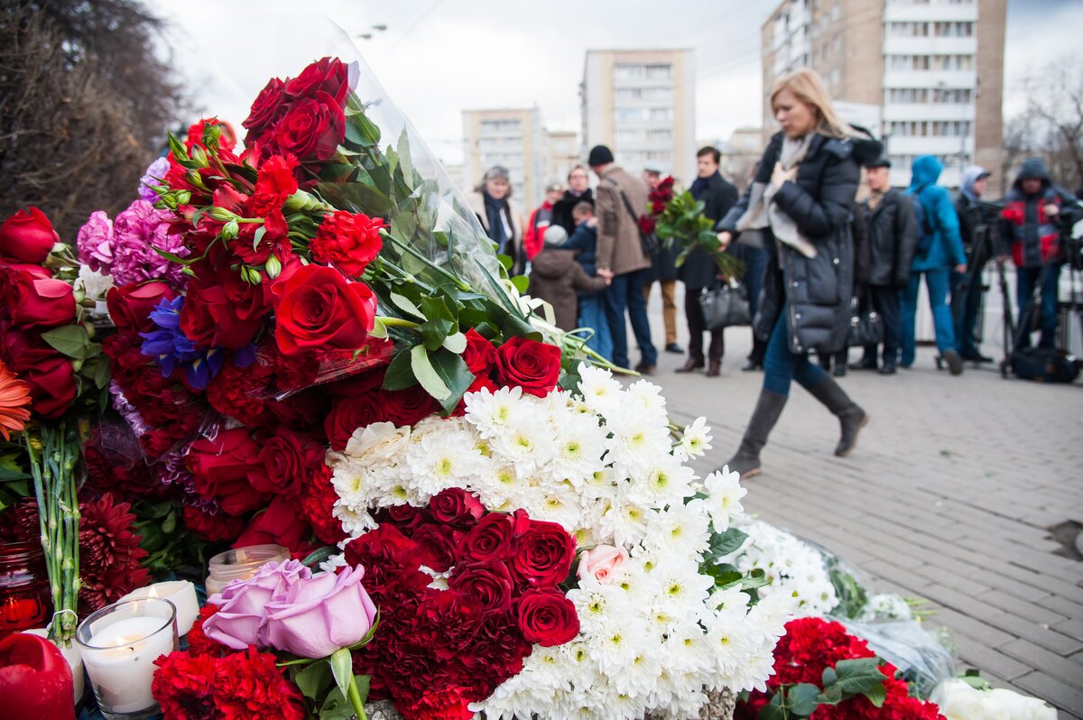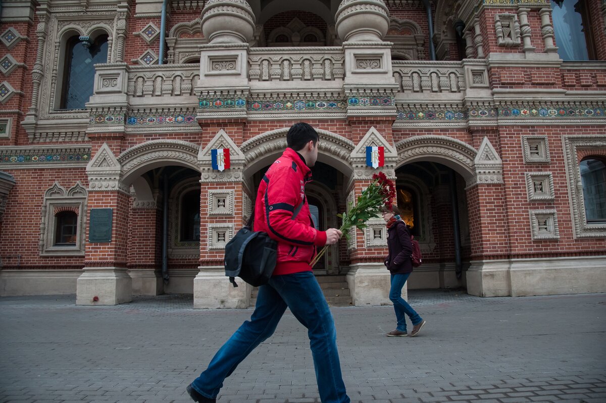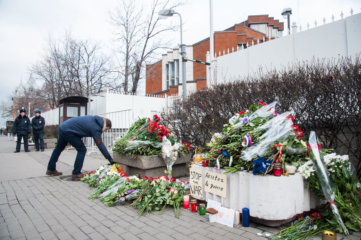 ЧПМосквичи принесли десятки букетов к посольству Франции