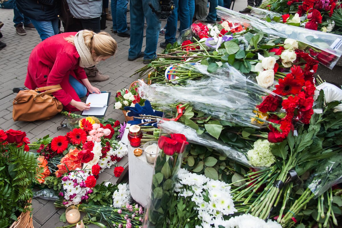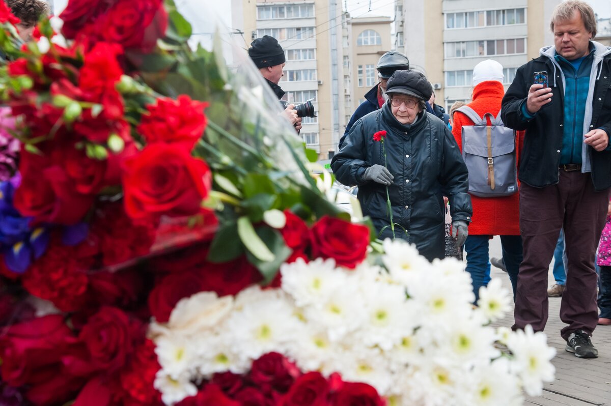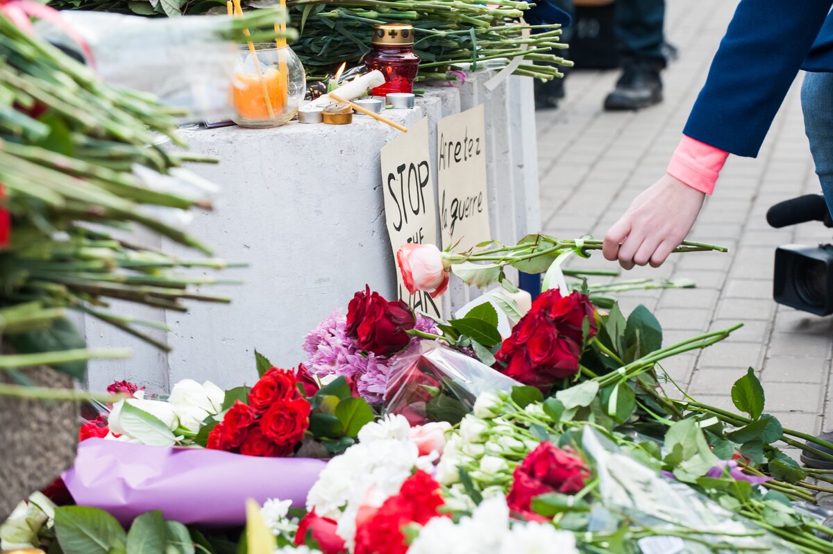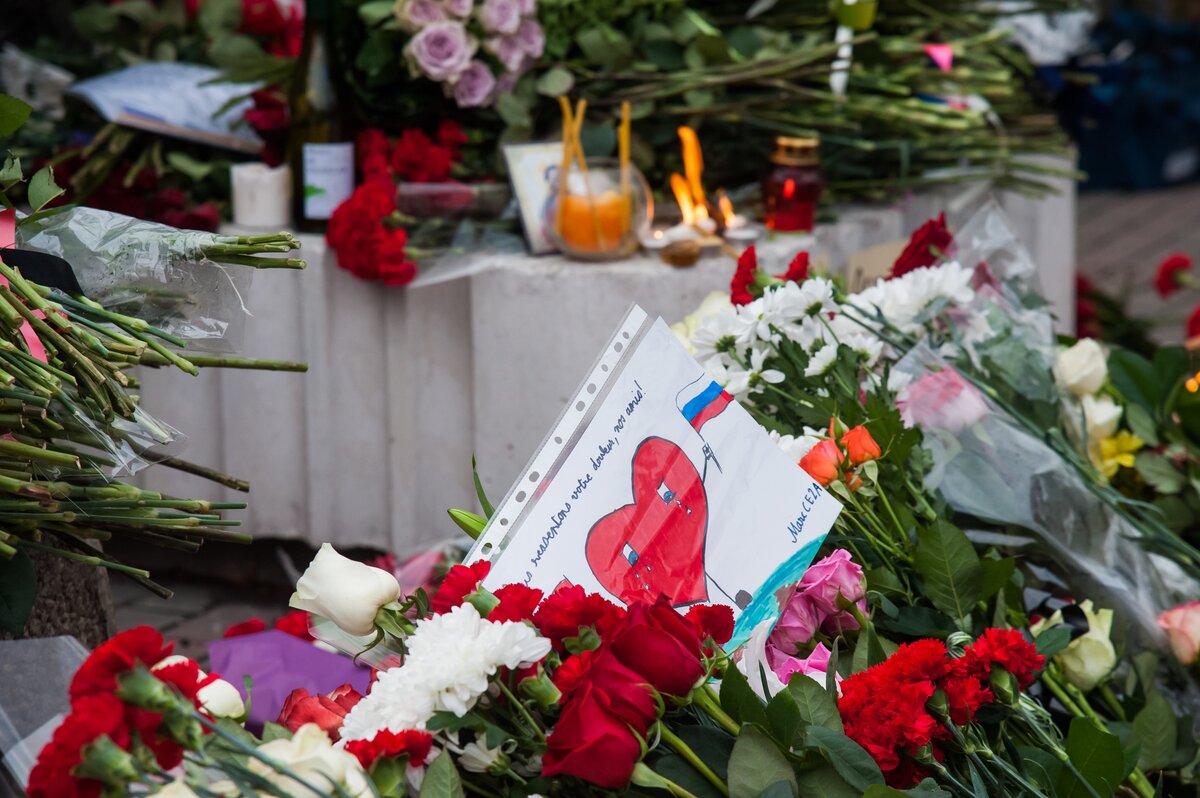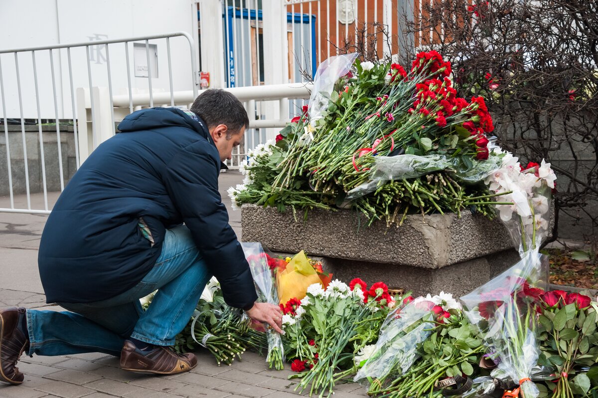 ЧПМосквичи принесли десятки букетов к посольству Франции