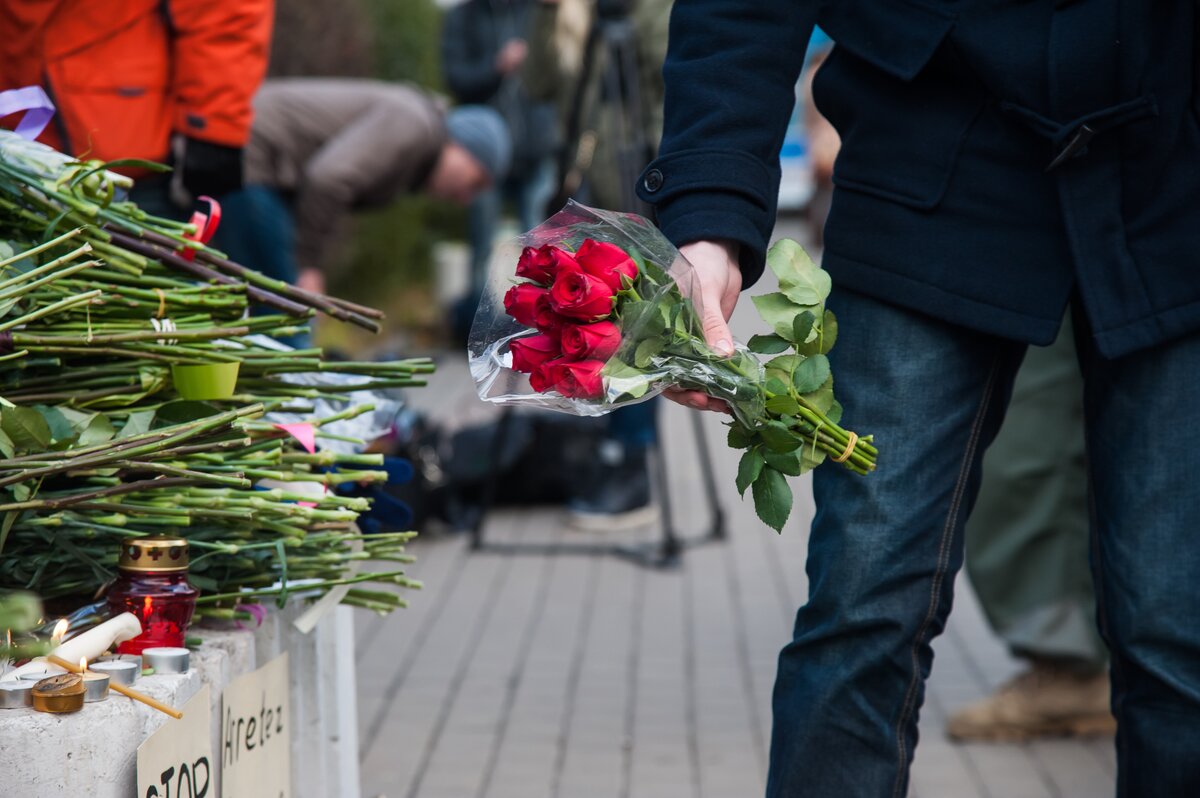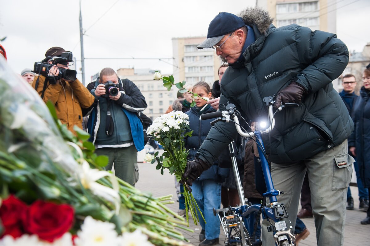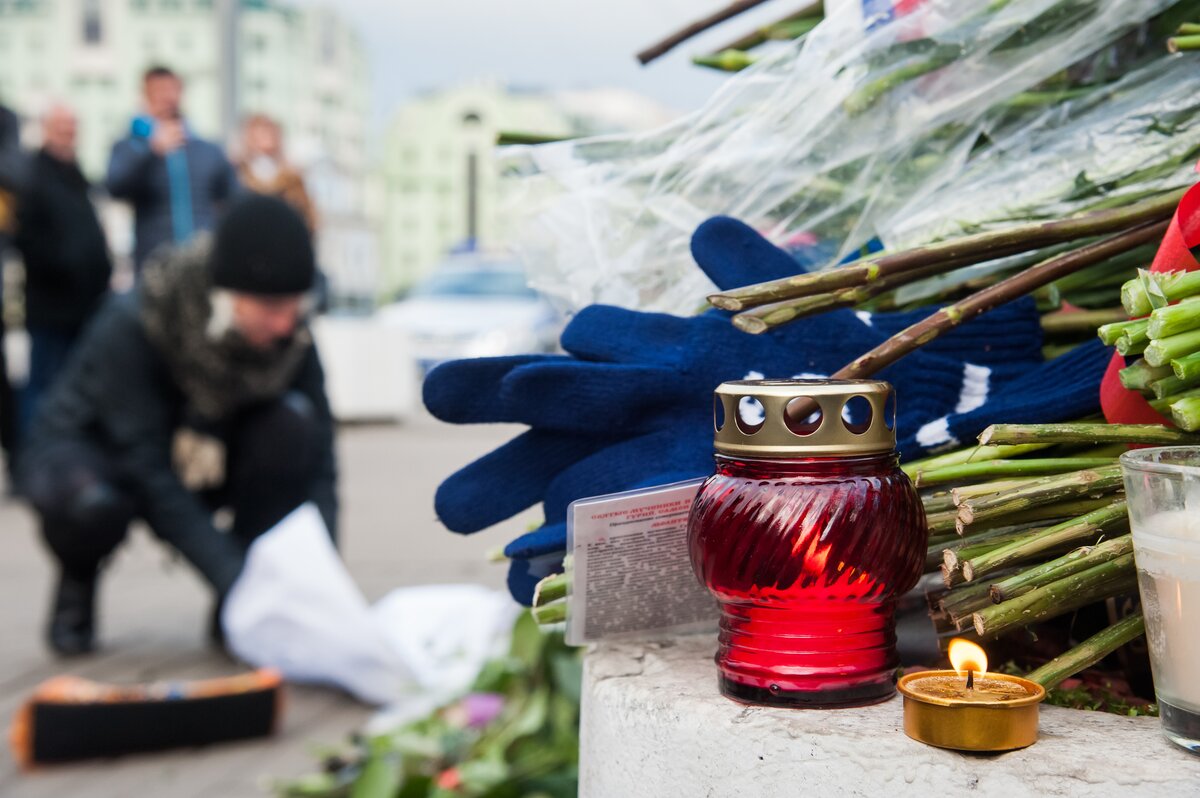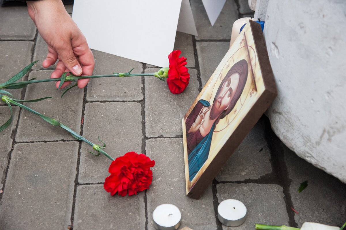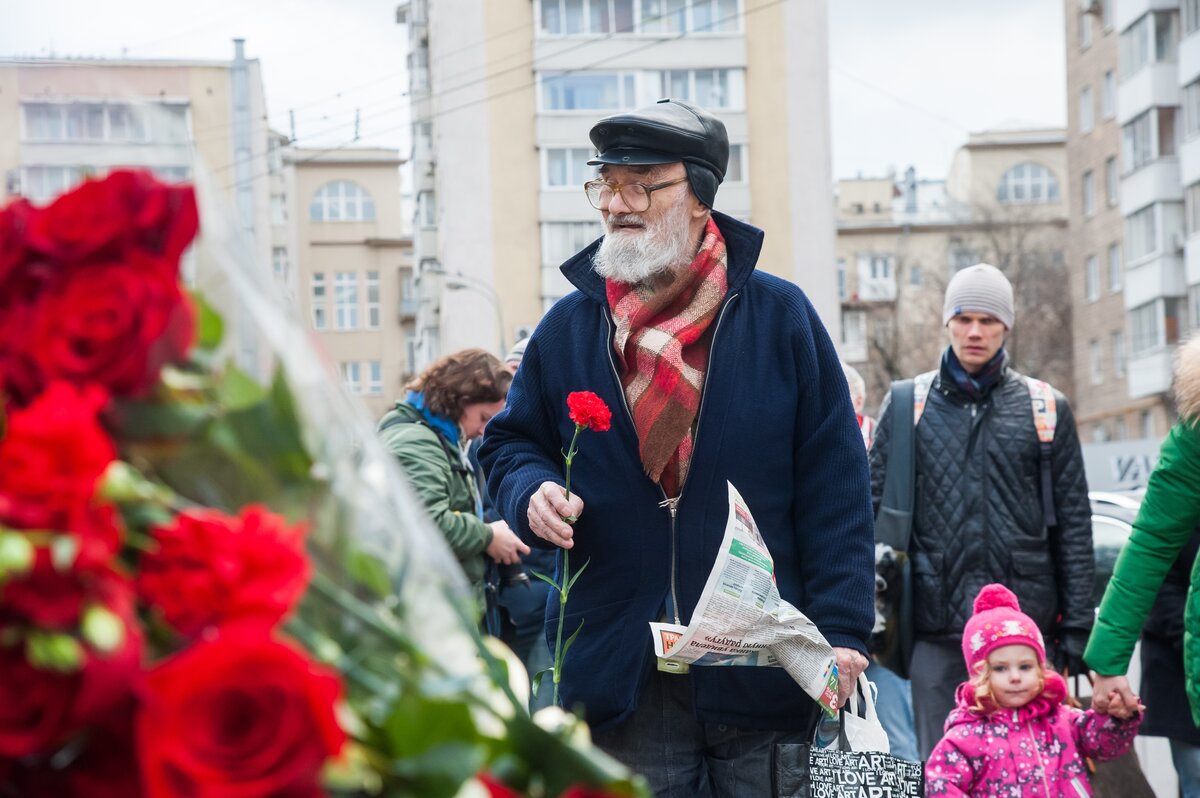 ЧПМосквичи принесли десятки букетов к посольству Франции