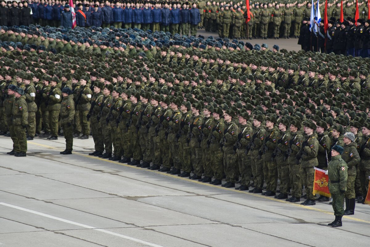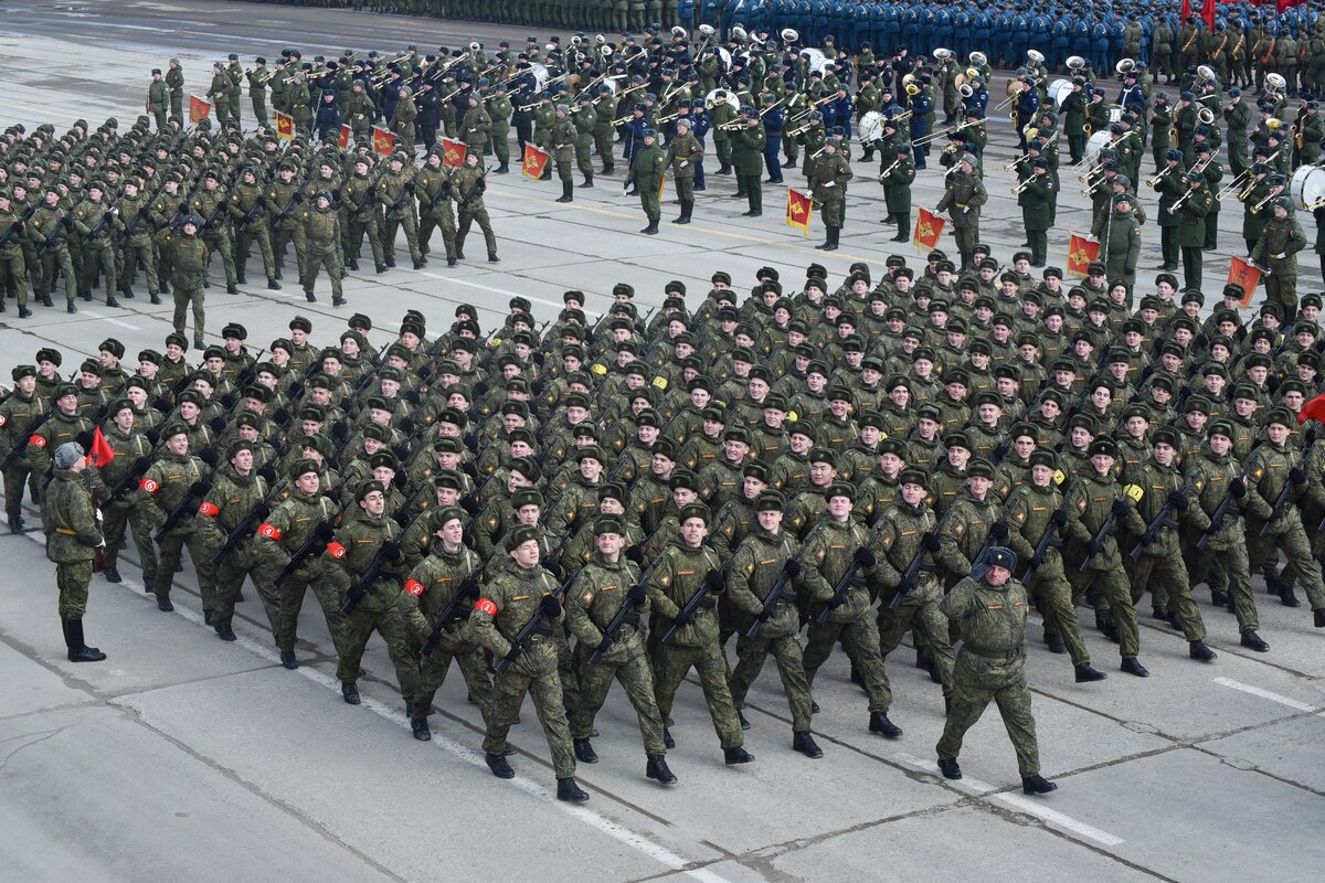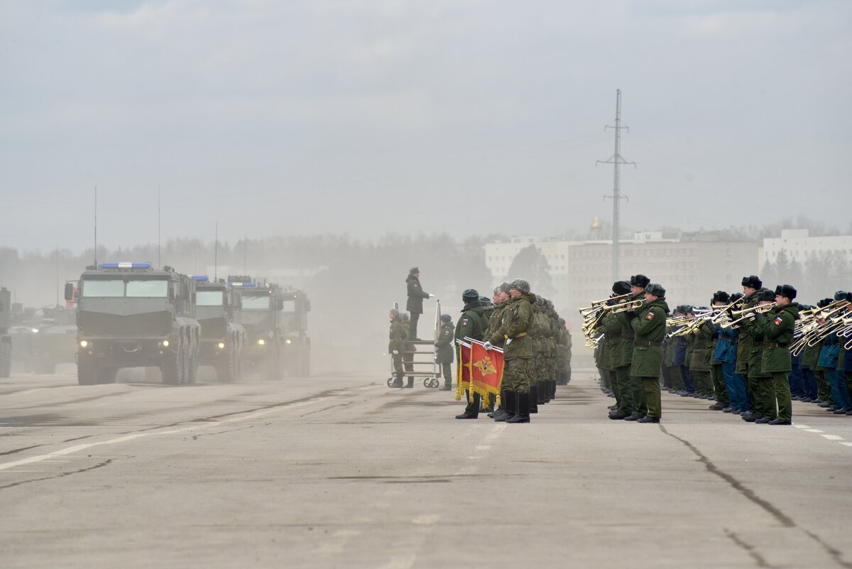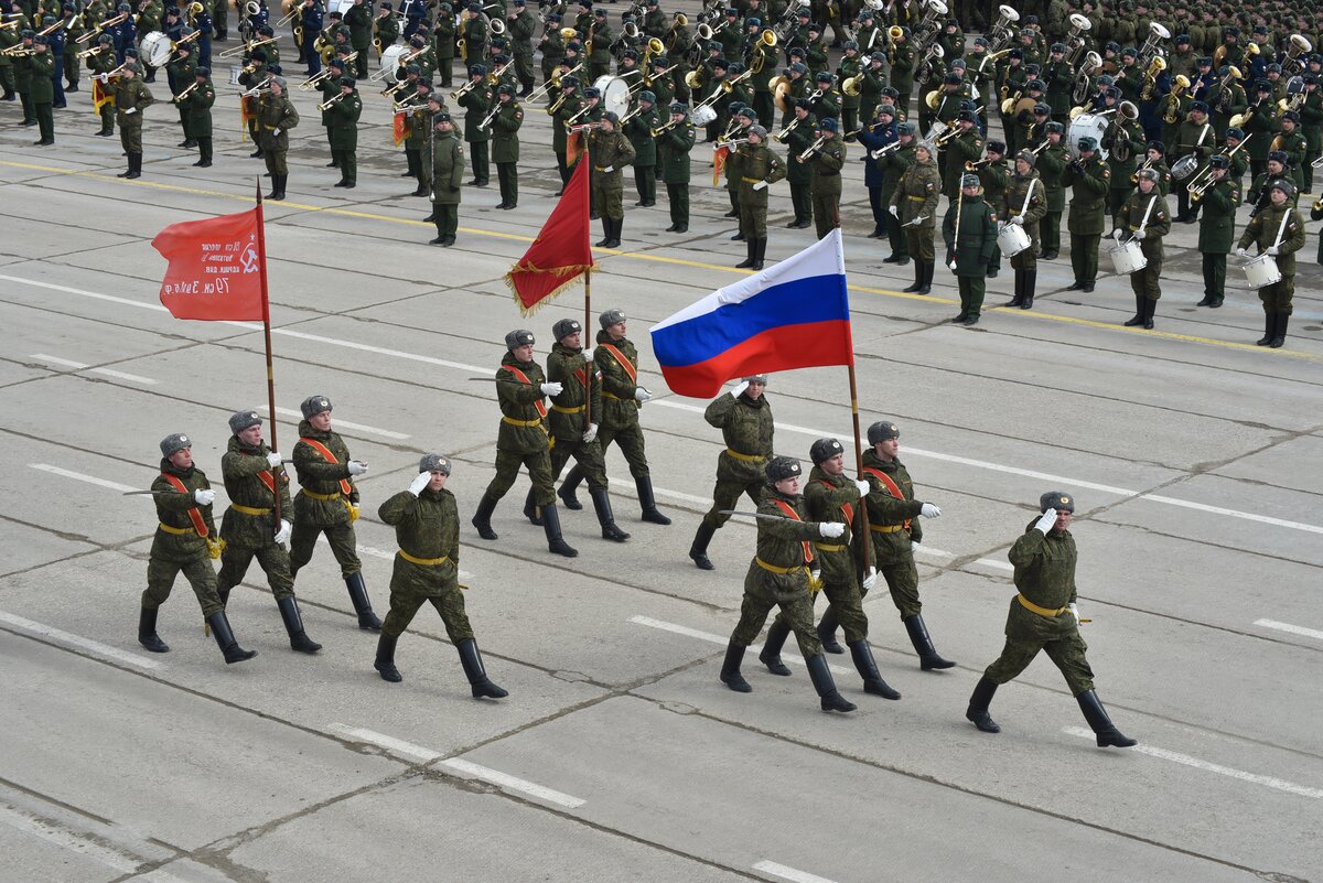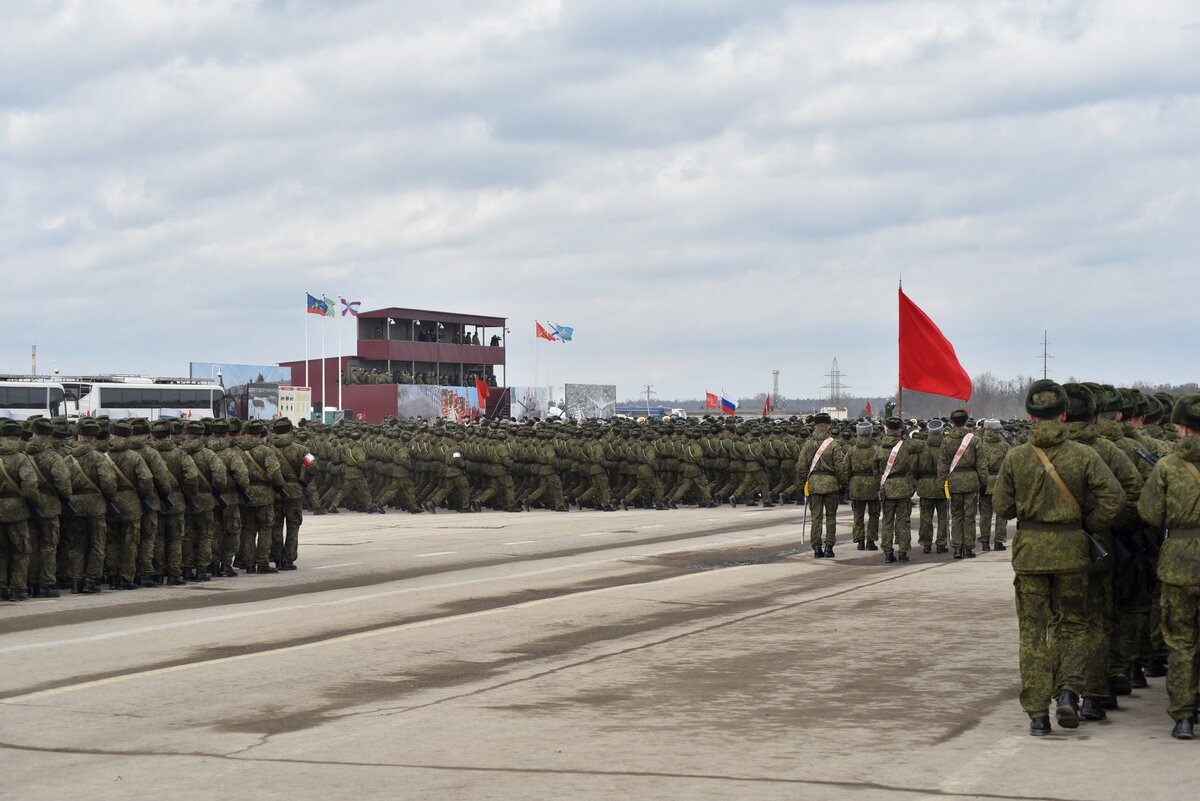 На подмосковном полигоне Алабино прошла тренировка парада Победы. В репетиции приняли участие более 10 тысяч военнослужащих и более 100 единиц современной военной техники, в том числе автомобили "Тигр", бронетранспортеры БТР-82А, танки Т-90А, самоходные гаубицы "Мста-С" и многие другие.