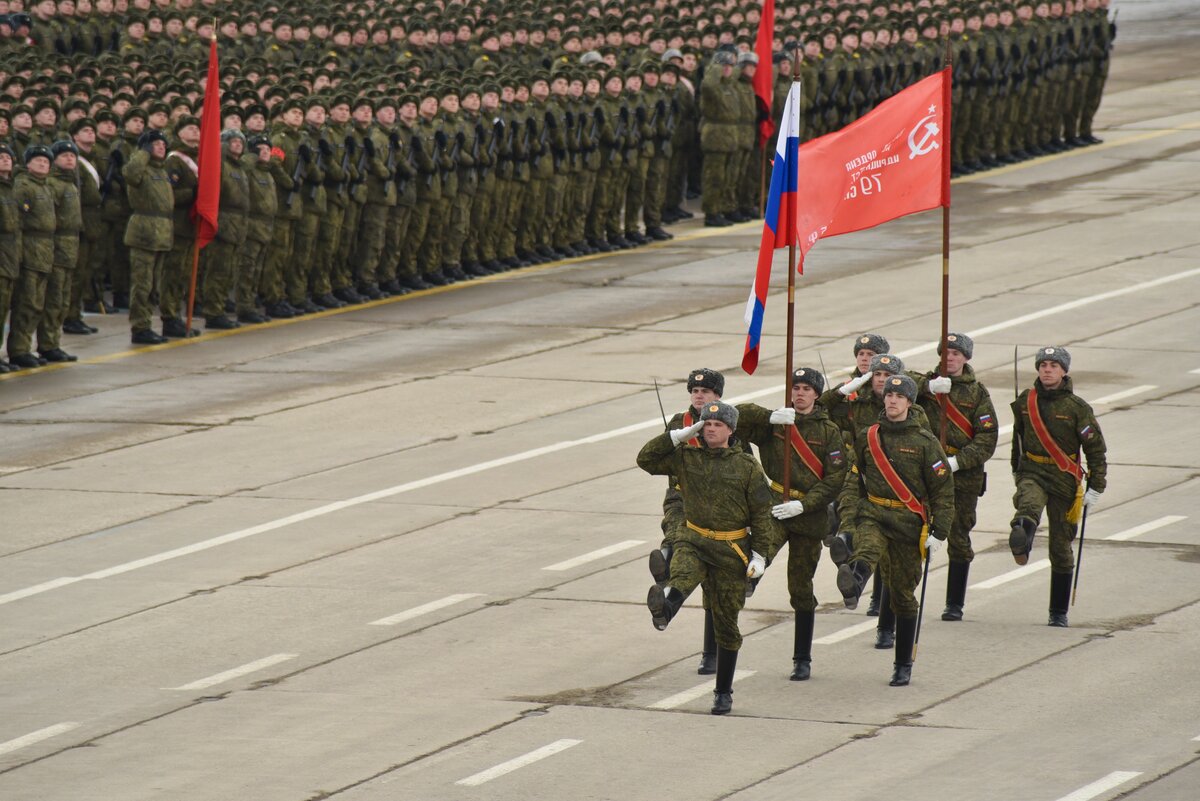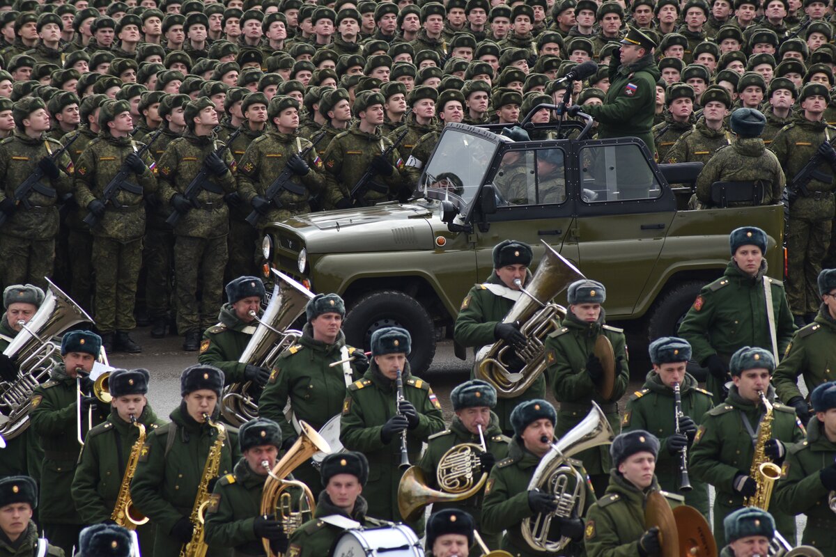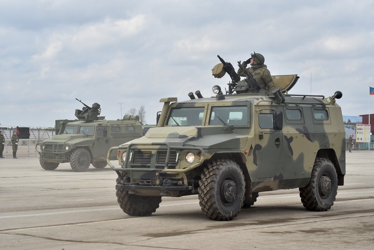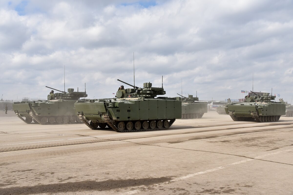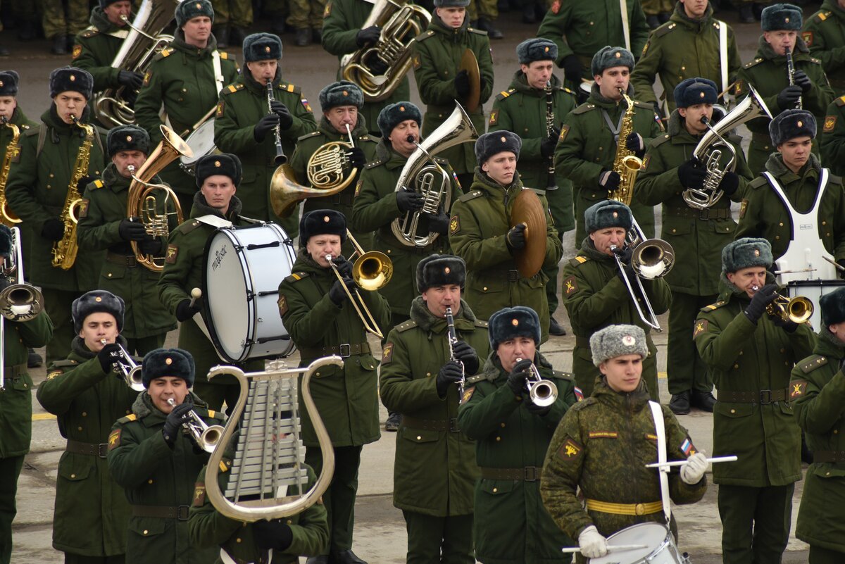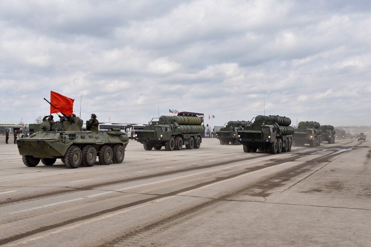 На подмосковном полигоне Алабино прошла тренировка парада Победы. В репетиции приняли участие более 10 тысяч военнослужащих и более 100 единиц современной военной техники, в том числе автомобили "Тигр", бронетранспортеры БТР-82А, танки Т-90А, самоходные гаубицы "Мста-С" и многие другие.