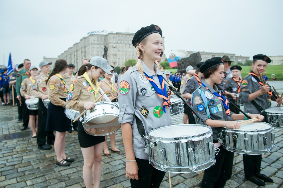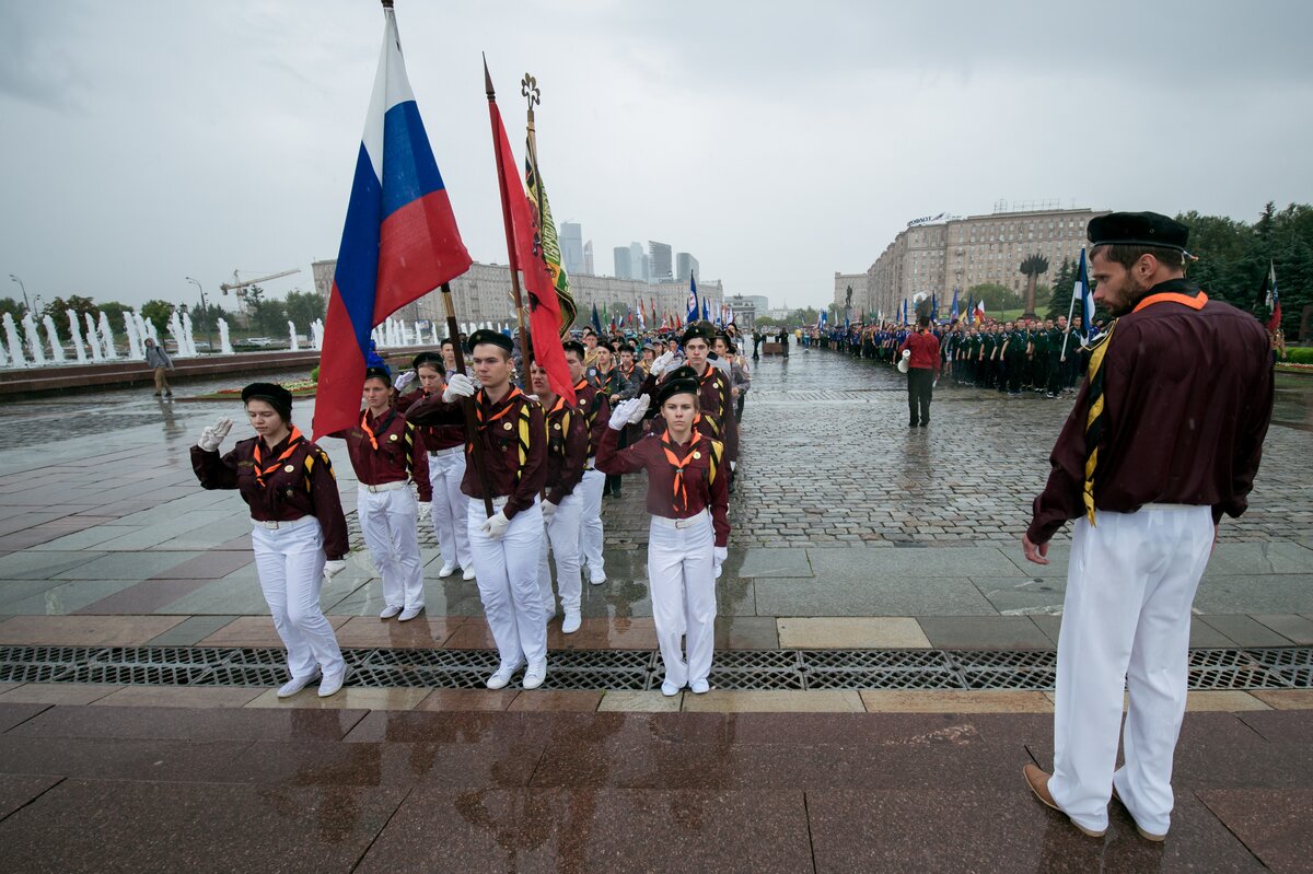 На Поклонной горе прошел парад скаутов, посвященный открытию VIII Всероссийского слета разведчиков-скаутов "Бородино-2016".