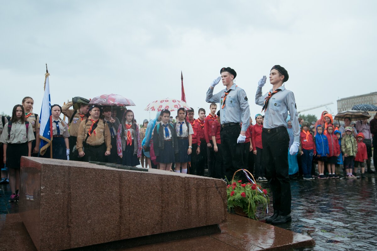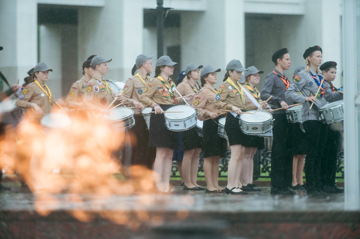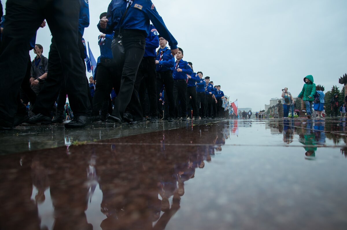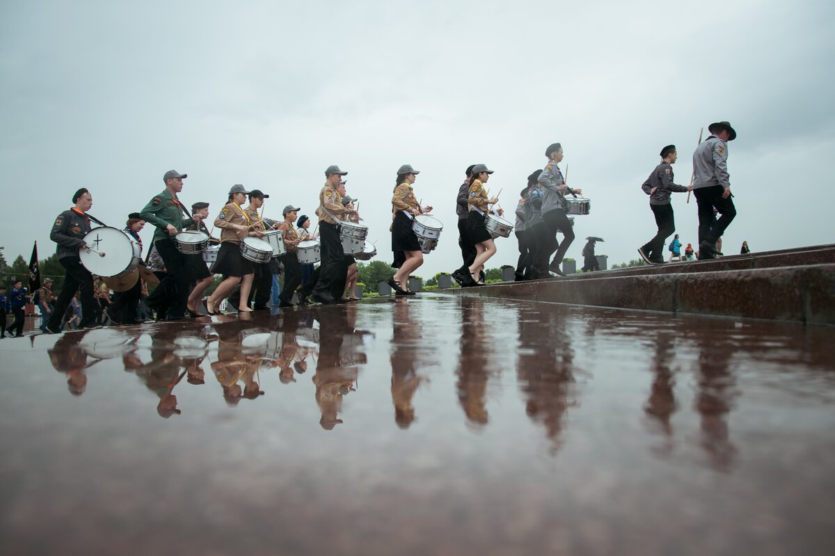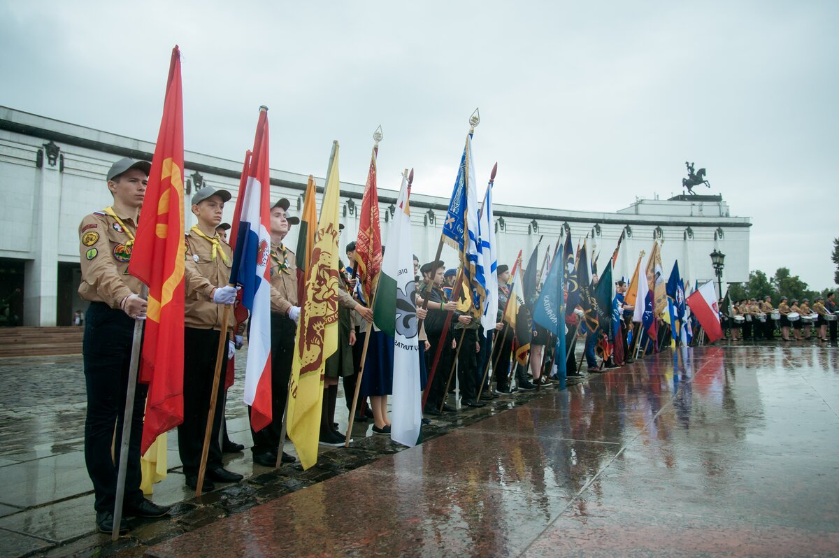 Скауты возложили цветы к памятникам Парка Победы и маршем проследовали к Вечному огню. Там состоялось торжественное построение, возложение гирлянды, исполнение гимна и торжественное прохождение. В мероприятии приняли участие около 1500 человек из более чем 20 регионов России.
