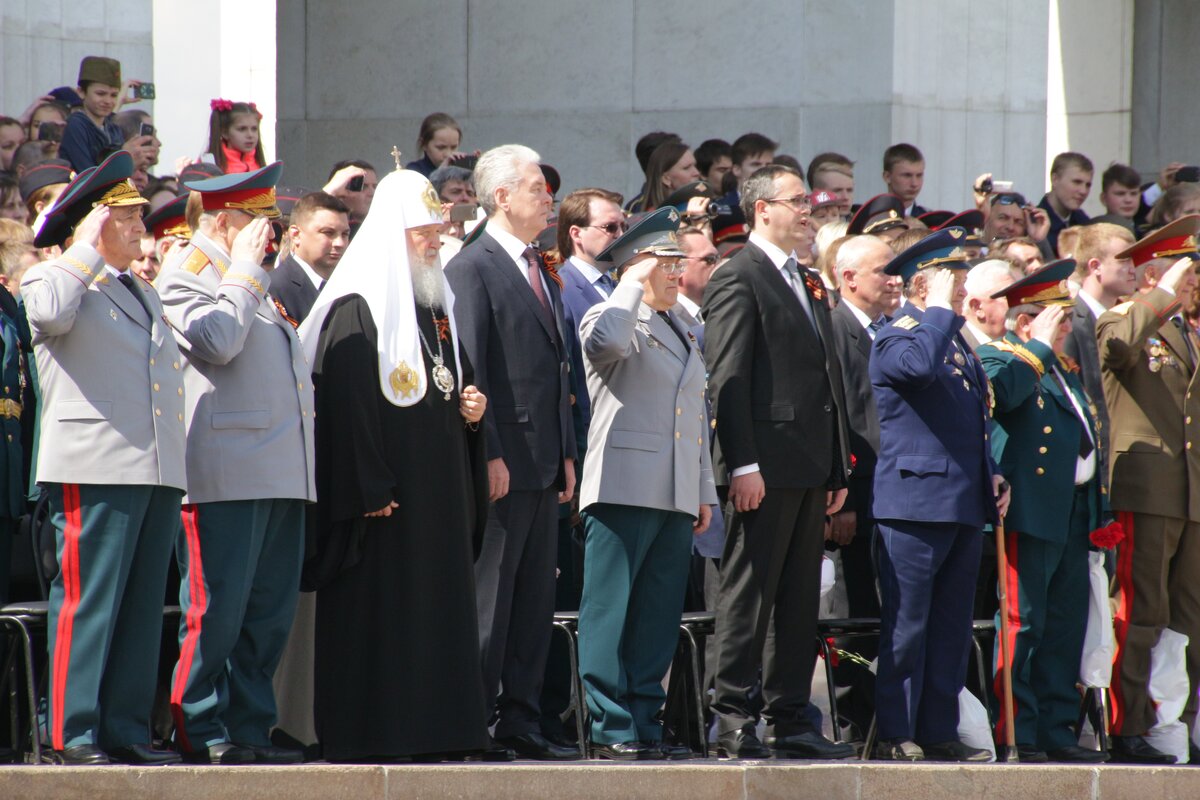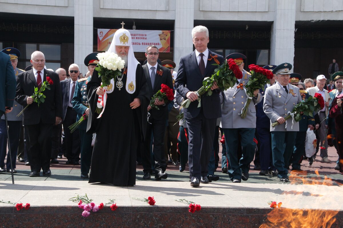 В мероприятии на Поклонной горе приняли участие патриарх Московский и всея Руси Кирилл, мэр Москвы Сергей Собянин и ветераны Великой Отечественной войны.