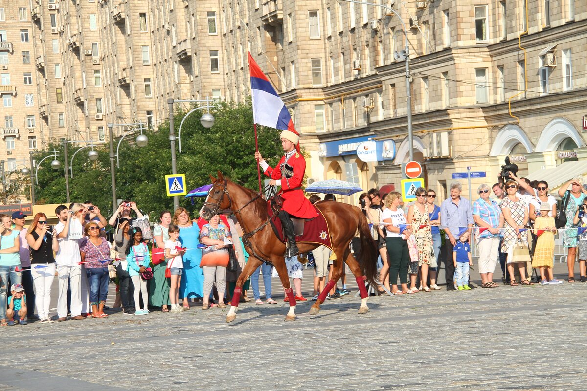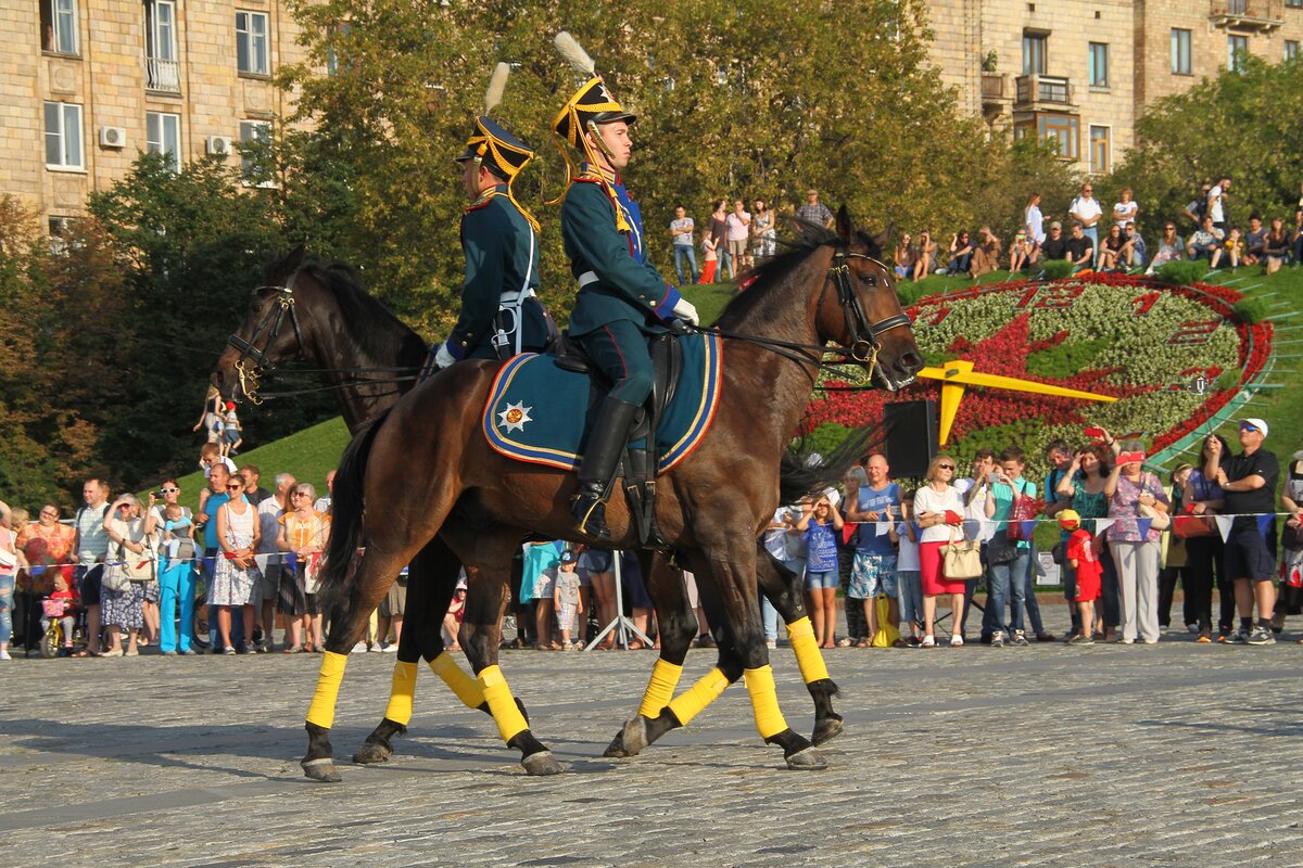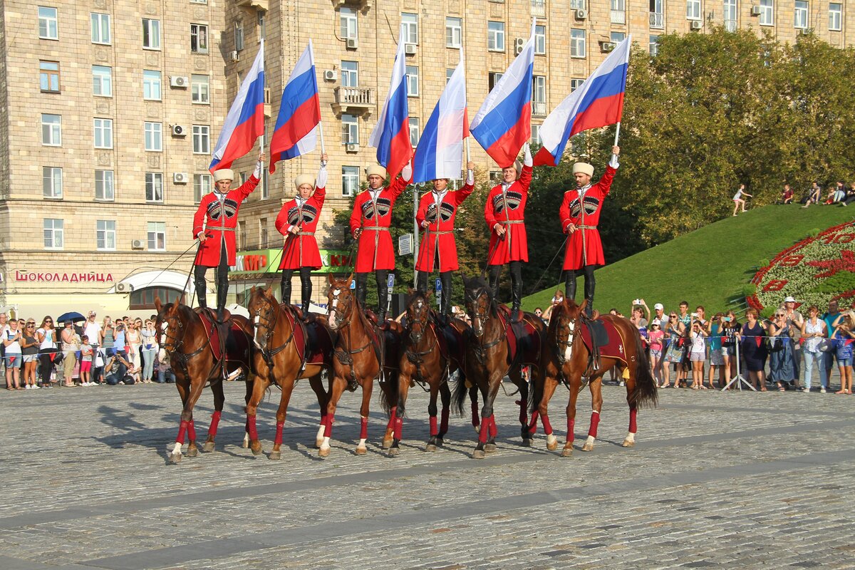 День Государственного флага Российской Федерации отметили на Поклонной горе 22 августа. Там прошло показательное выступление всадников совместной команды Кавалерийского почетного эскорта Президентского полка и Кремлевской школы верховой езды.