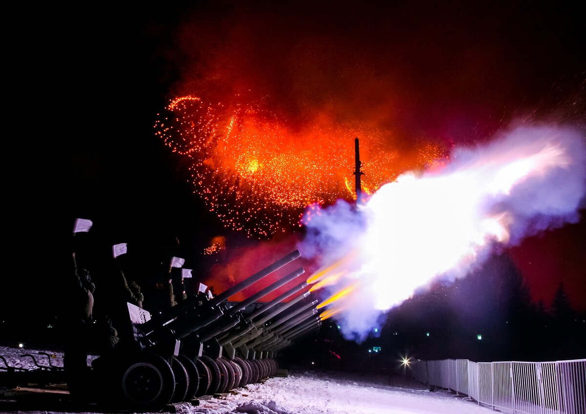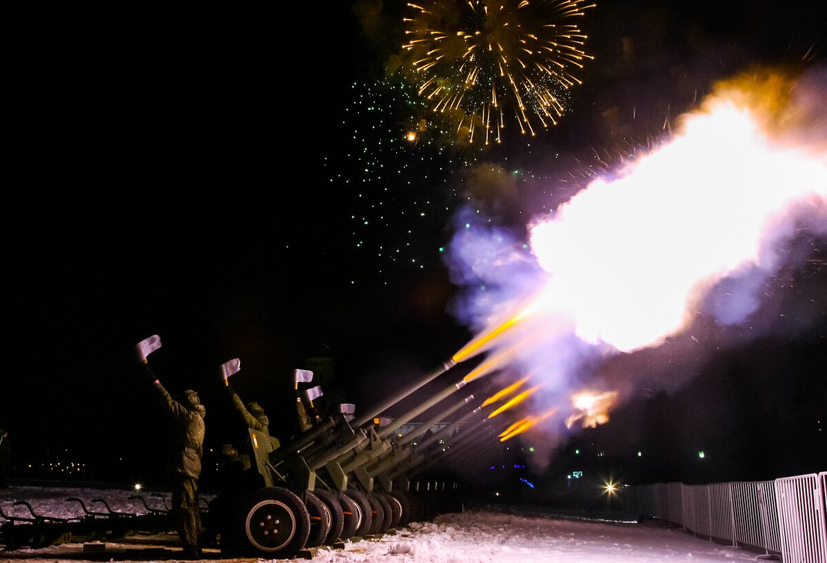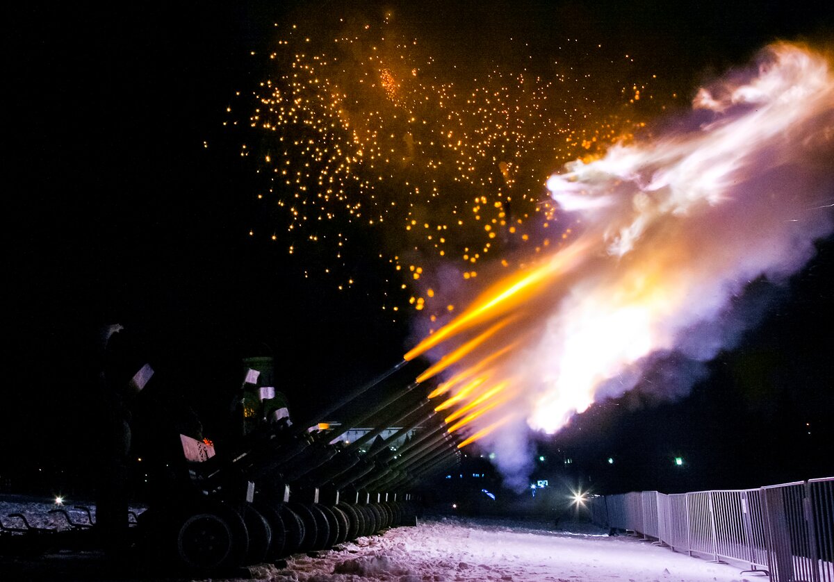В День защитника Отечества 10 тысяч выстрелов салюта украсили небо Москвы. Салютные установки были размещены в 16 точках столицы.