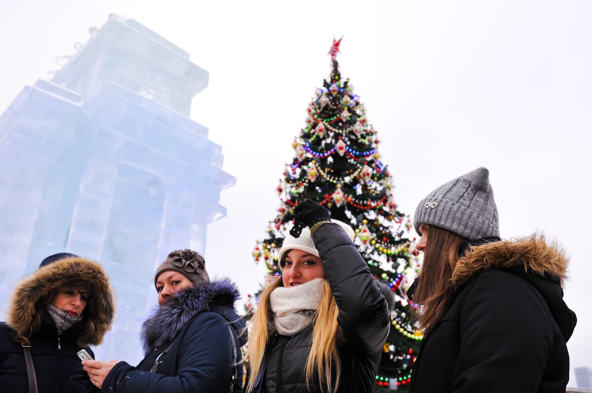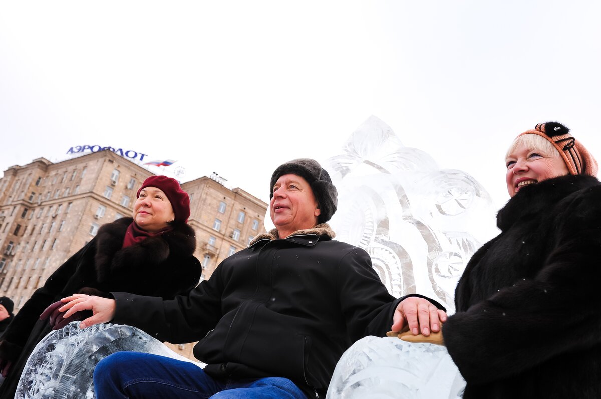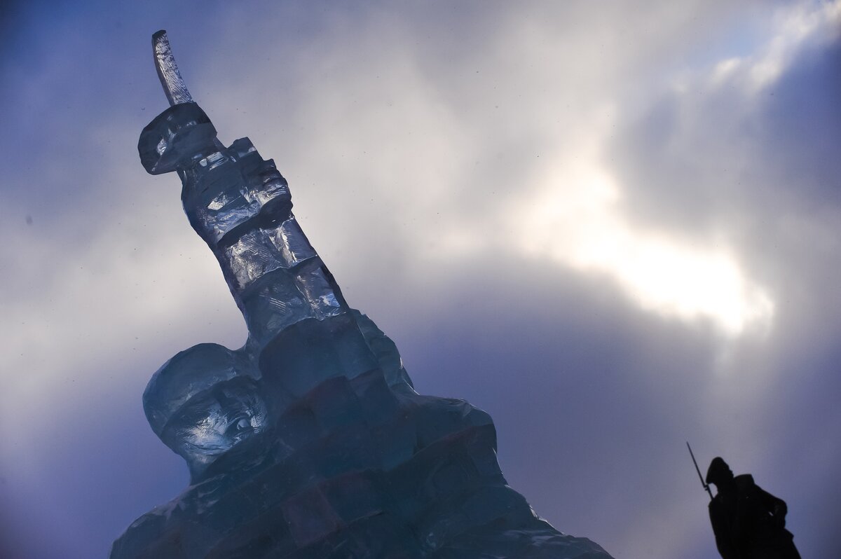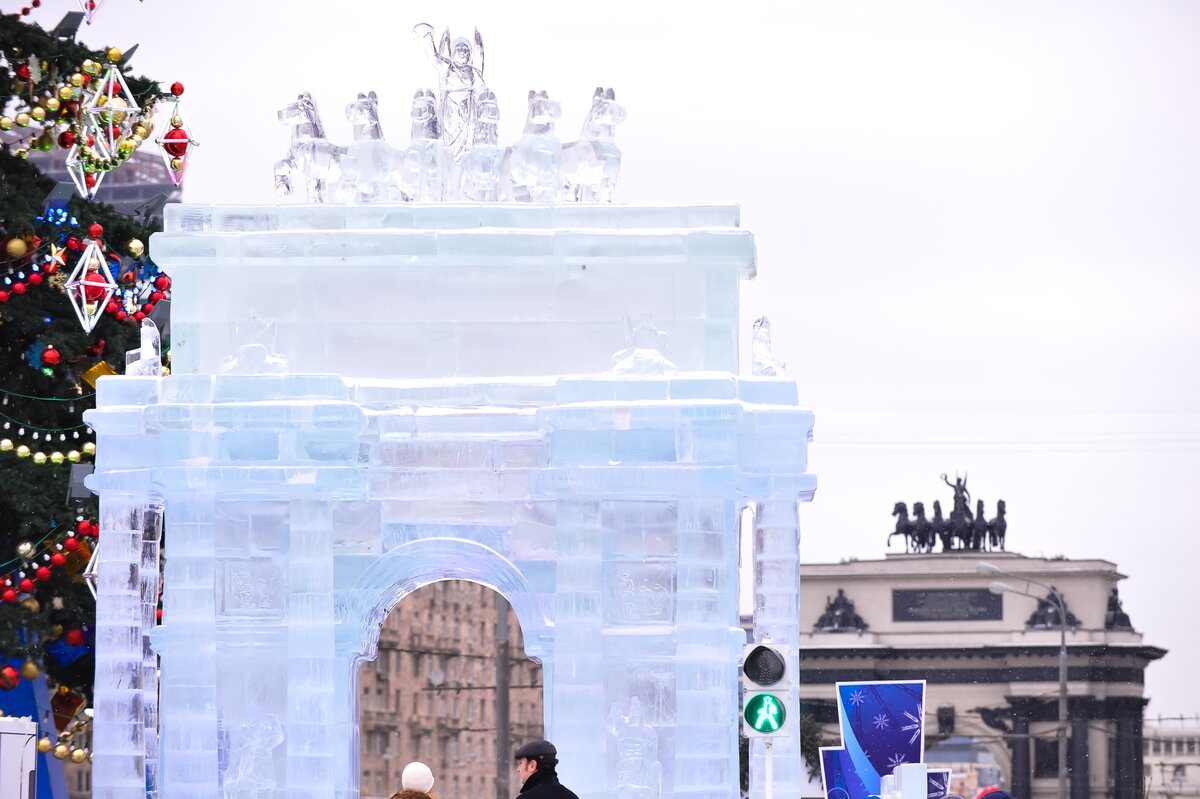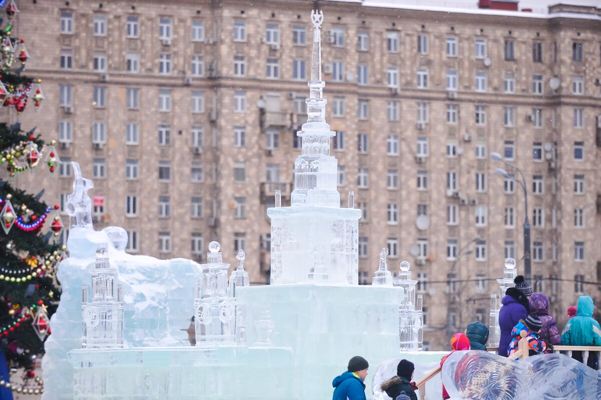 В парке Победы на Поклонной горе открылась выставка проекта "Ледовая Москва. В кругу семьи". Она представляет из себя ледовые миниатюрные копии основных достопримечательностей Москвы.