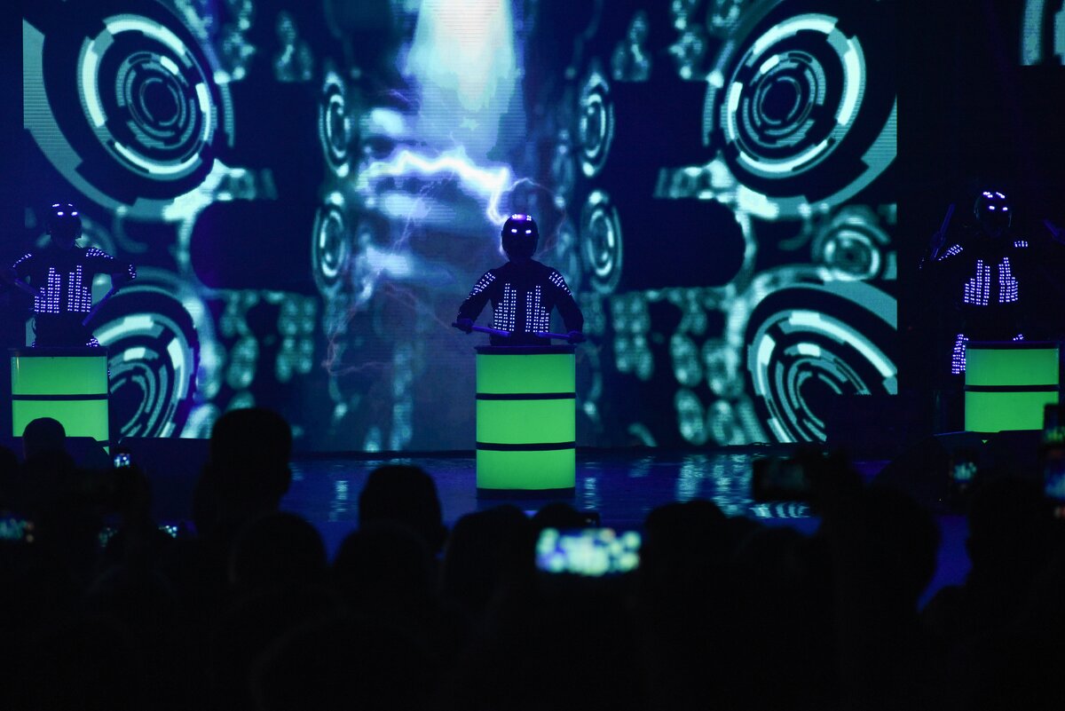Зажигать начали вместе с артистами, работающими в жанре световых шоу.