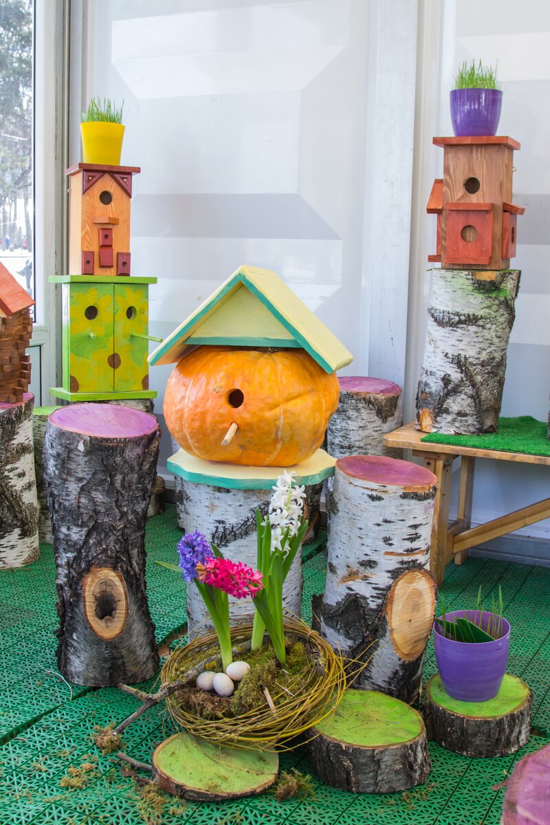 В рамках экспозиции было представлено более ста различных скворечников, начиная от декоративных моделей и заканчивая авторскими произведениями. Орнитологи также показали, как правильно вешать домики для птиц.