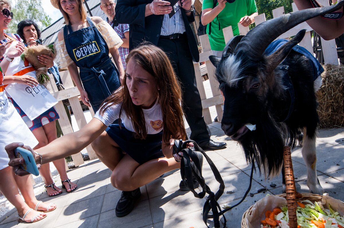 Прославившийся своей дружбой с тигром Амуром в Приморском сафари-парке козел Тимур открыл на ВДНХ Аллею славы четвероногих звезд.