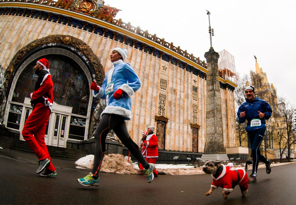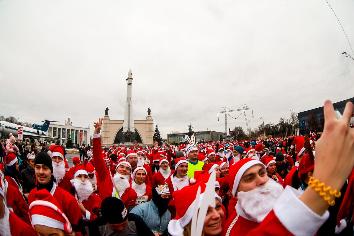 На ВДНХ прошел благотворительный забег Дедов Морозов. В забеге приняли участие полторы тысячи человек. Бегуны выбрали костюмы Деда Мороза, Зайца или Снежинки. Также они получили чип-датчик, которые следили, на каком участке дистанции находится участник. На выбор можно было пробежать одну из двух дистанций на 5 или 10 километров.