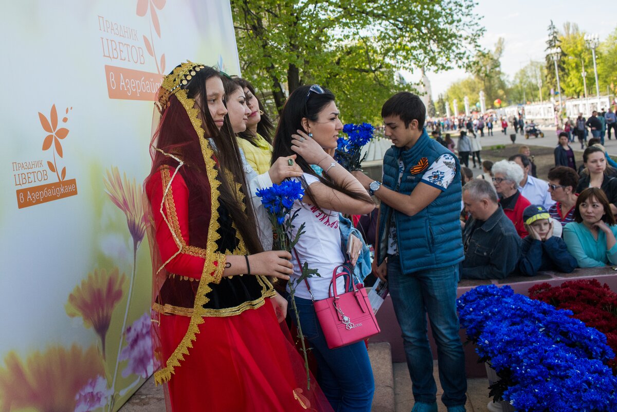 10 мая на площади перед павильоном №14"Азербайджан" на ВДНХ пришел Праздник цветов. В этот день в Баку ежегодно проходит масштабный цветочный фестиваль: улицы и парки украшаются изысканными цветочными композициями из сотен тысяч благоухающих бутонов, а для бакинских девушек живые цветы становятся главной деталью нарядов.