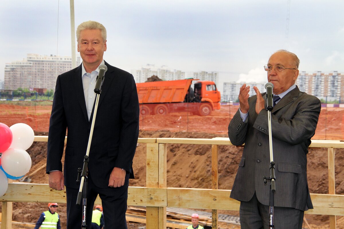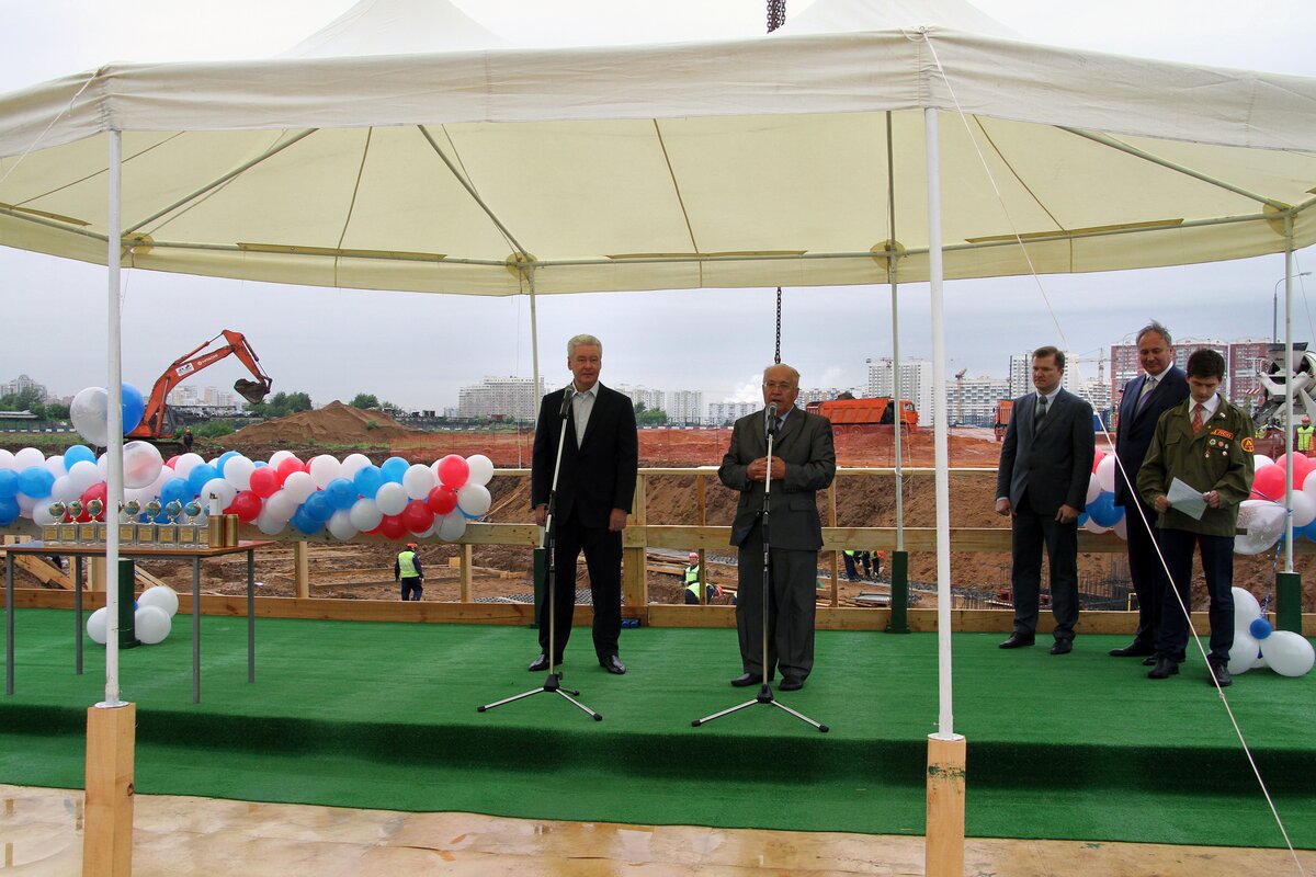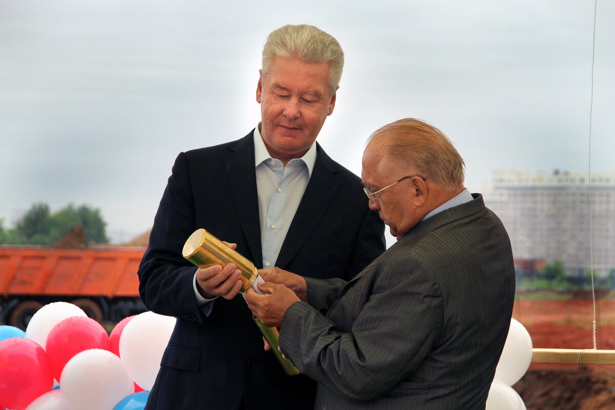 Мэр МосквыСергей Собянин заложил капсулу памяти в фундамент будущей школы