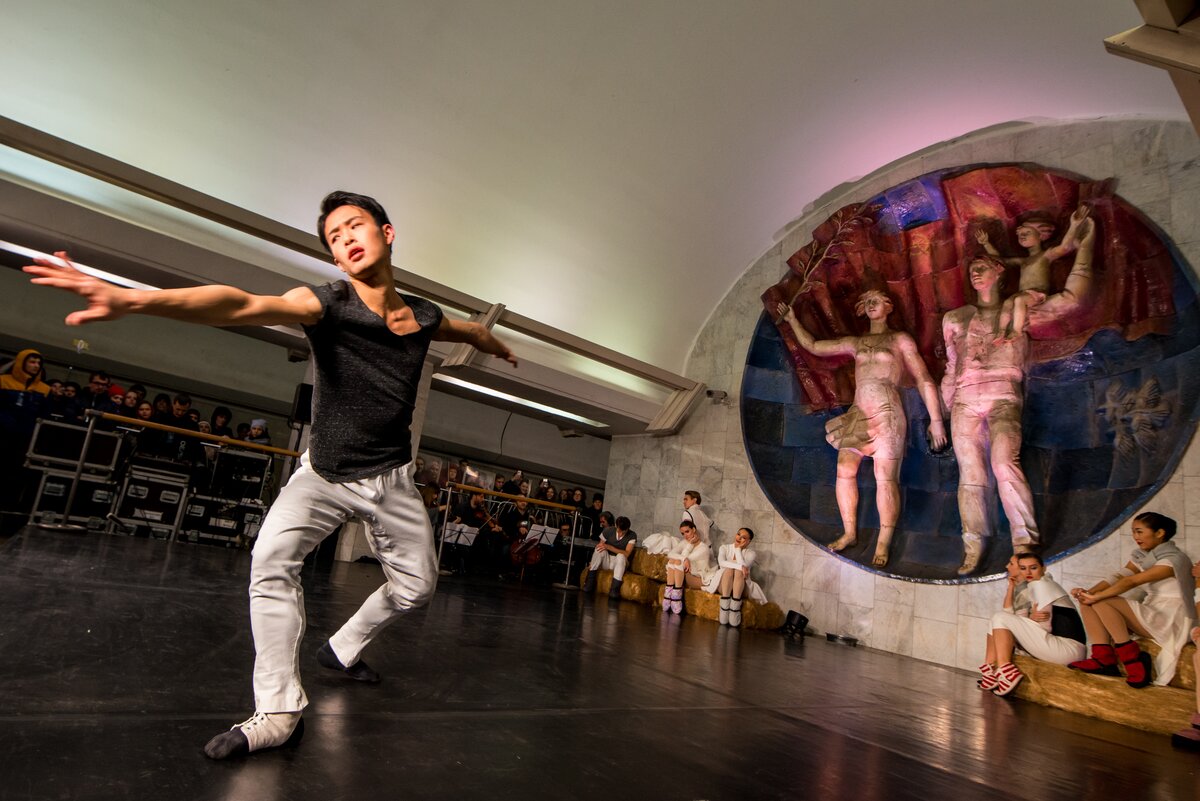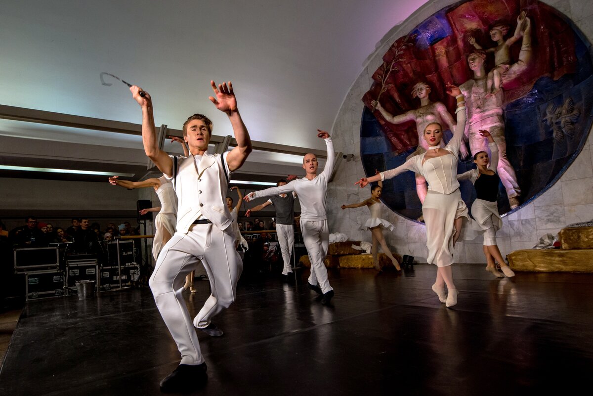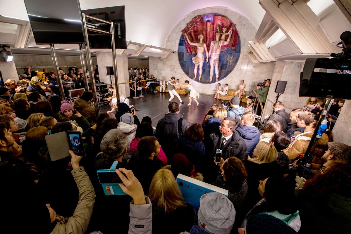 "Ночь искусств" в этом году прошла и в московском метрополитене. На платформе станции "Полянка" театр "Балет Москва" представил одноактный спектакль "Эквус". Это постановка о непростой профессии артиста балета. В этом году "Ночь искусств" прошла во всех городах России. Во время акции под девизом "Время создавать" прошло свыше 1700 мероприятий.