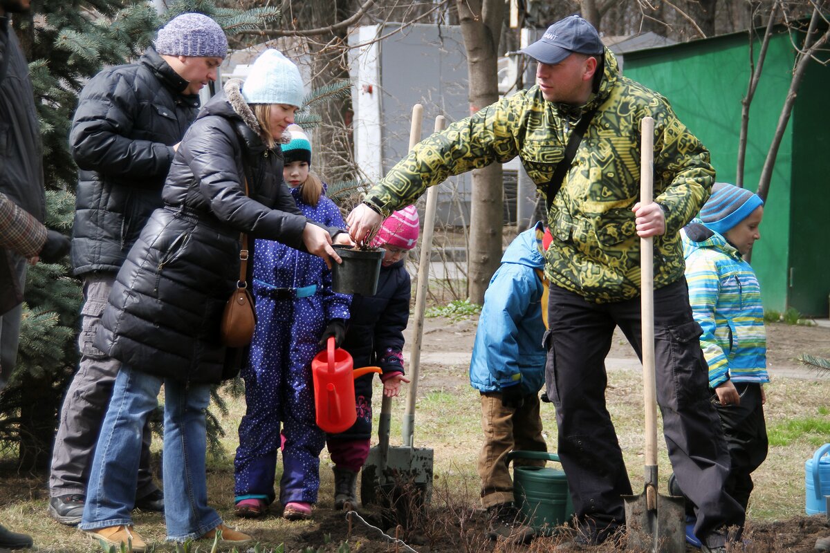 Чистый городУчастники акции посадили кусты спиреи в "Сокольниках"