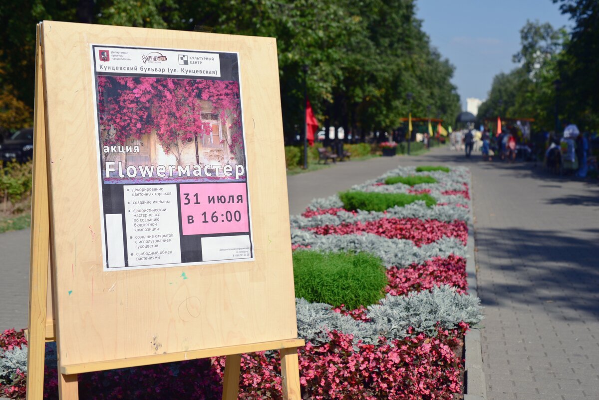 На Кунцевском бульваре прошла акция Flowerмастер, в рамках которой все желающие могли обменяться растениями. Также гости приняли участие в увлекательных мастер-классах, украсили цветочные горшки, послушали лекцию о комнатных растениях и их роли в жизни человека.