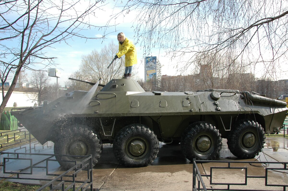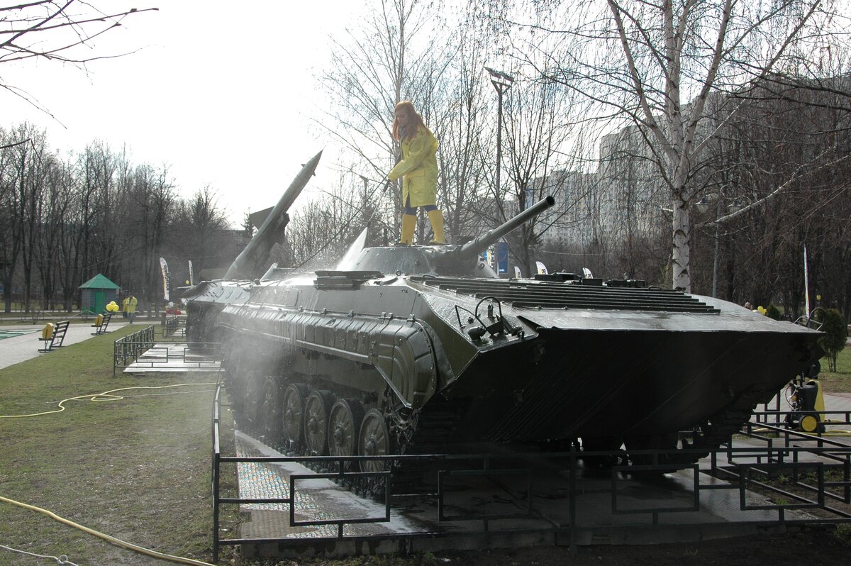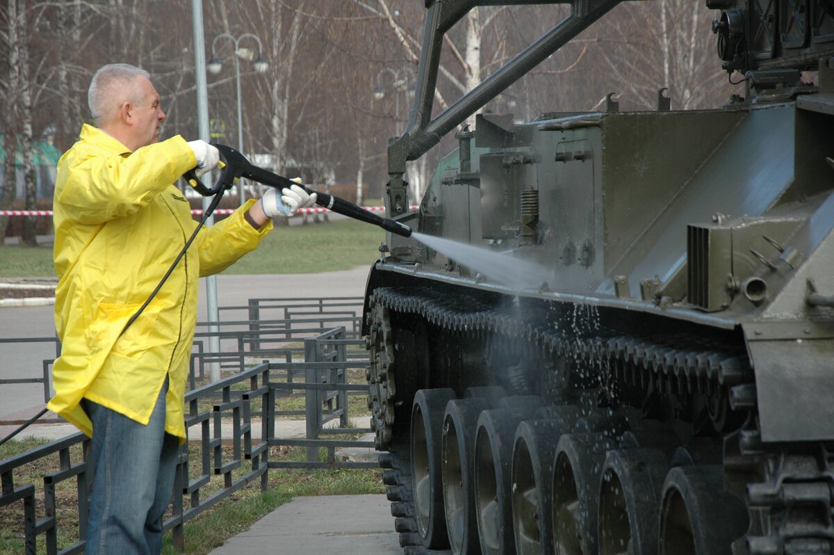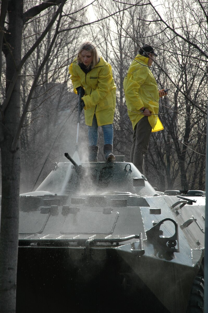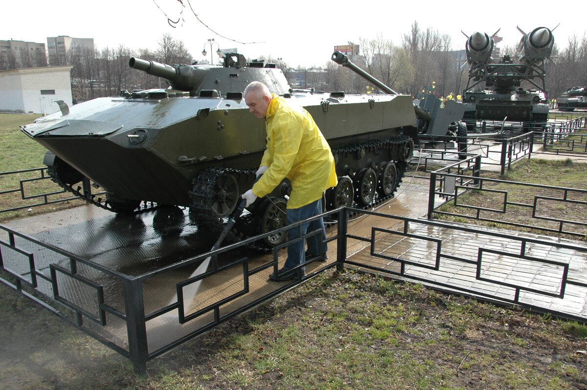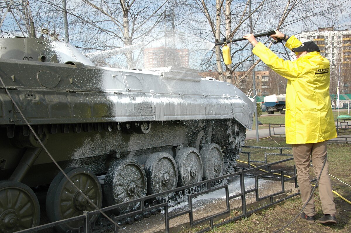 18 апреля в подмосковных Химках прошел субботник, приуроченный ко Дню Победы. В его рамках в сквере имени Марии Рубцовой очистили все экспонаты выставки военной техники, среди которых представлены танк Т-34, ракеты 3М8 и многое другое. Кроме того, привели в порядок дорожки сквера и детскую площадку. Организаторами мероприятия выступили компания Karcher и администрация города.
