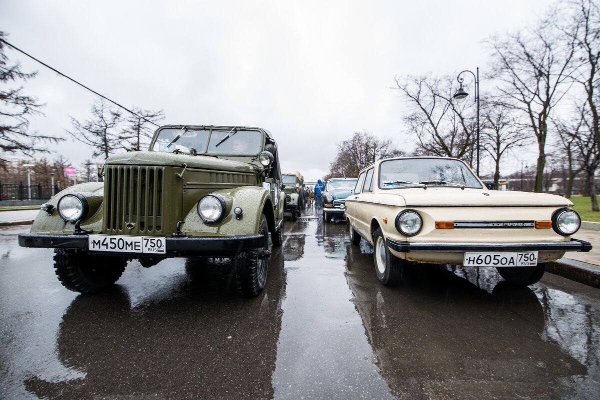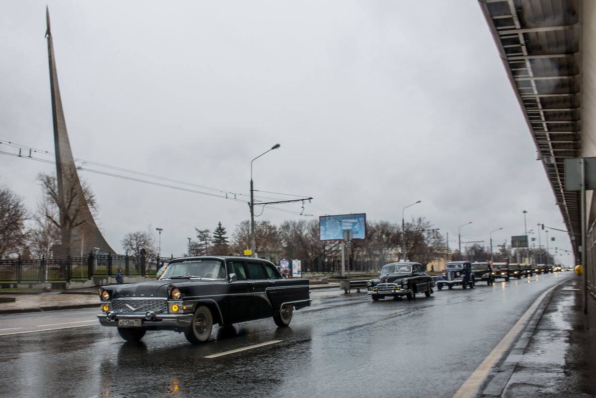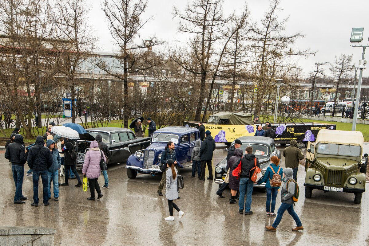 Пробег ретроавтомобилей, посвященный 56-й годовщине полета Юрия Гагарина в космос, прошел в Москве 8 апреля.