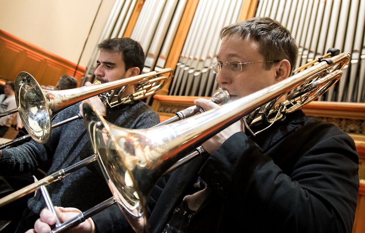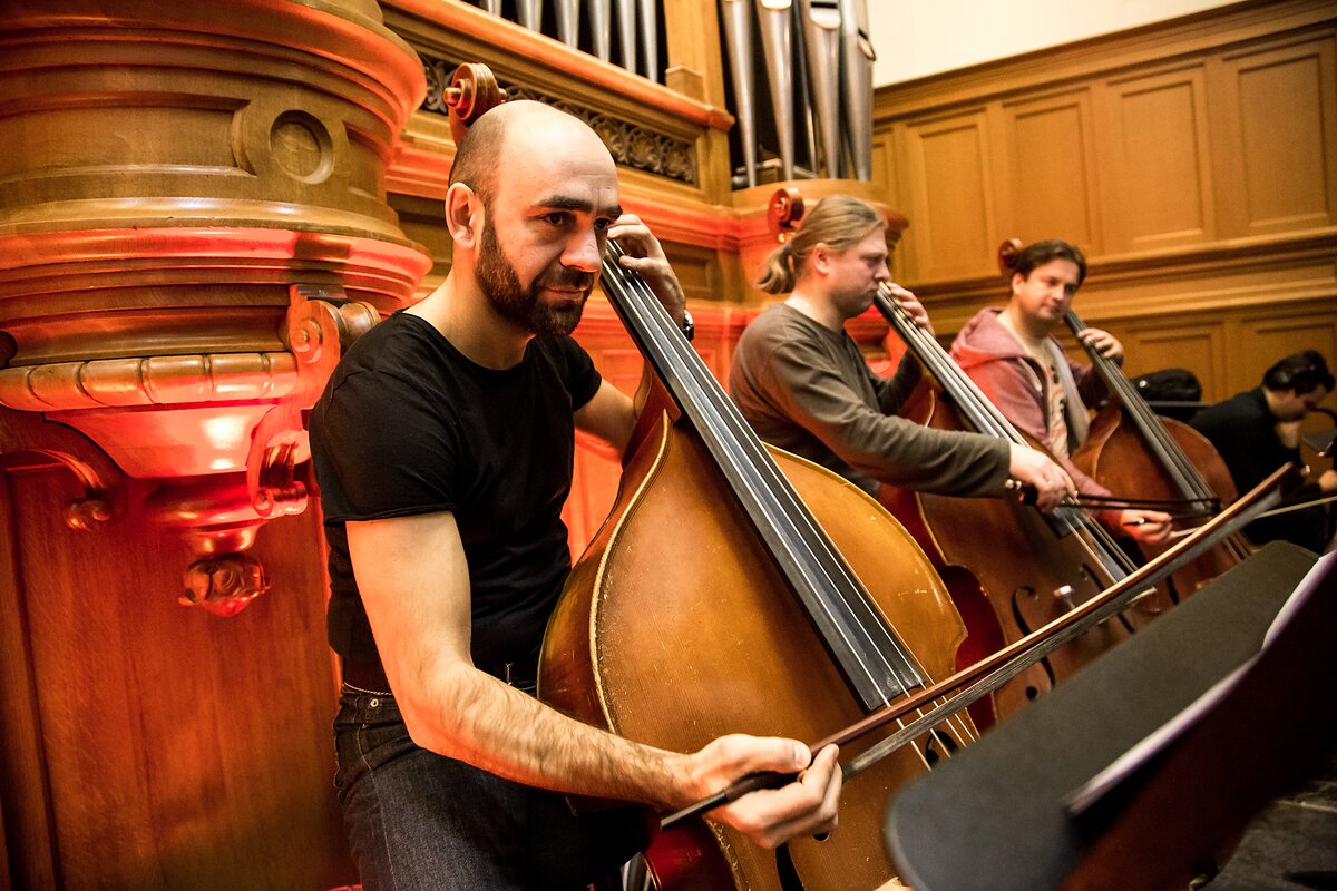 Музыканты репетировали в Большом зале консерватории, где 28 декабря состоялось долгожданное выступление пермского маэстро.