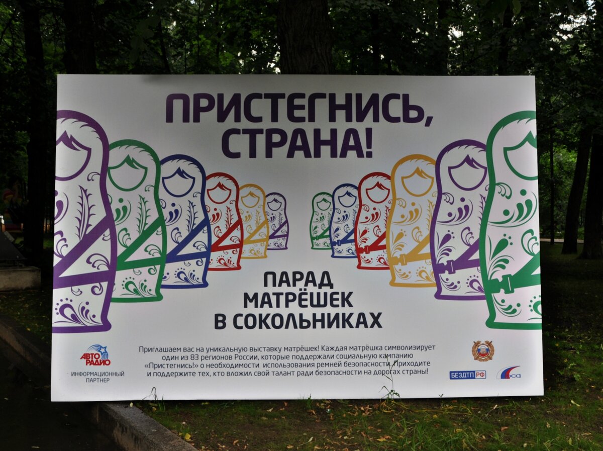 8 июня в парке "Сокольники" состоялась грандиозная выставка матрешек под девизом "Пристегнись, страна!". Мероприятие прошло в рамках кампании, организованной ГИБДД и организацией "Движение без опасности".