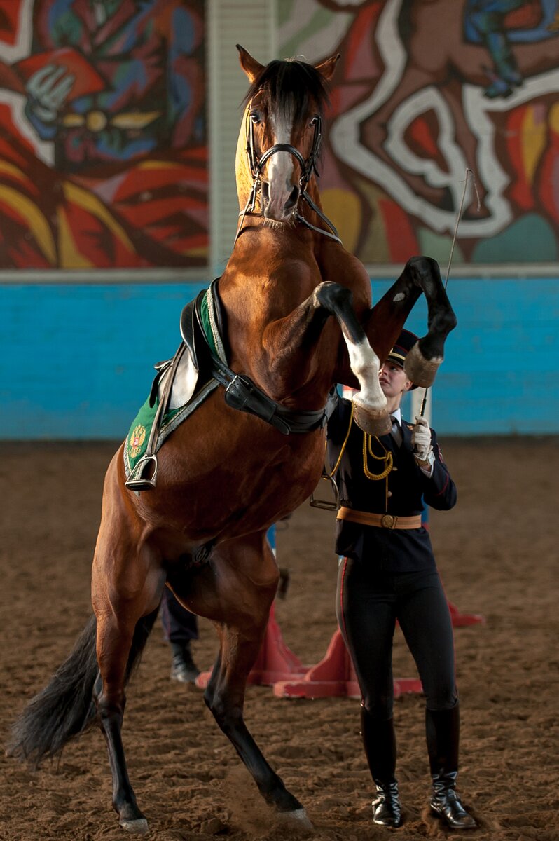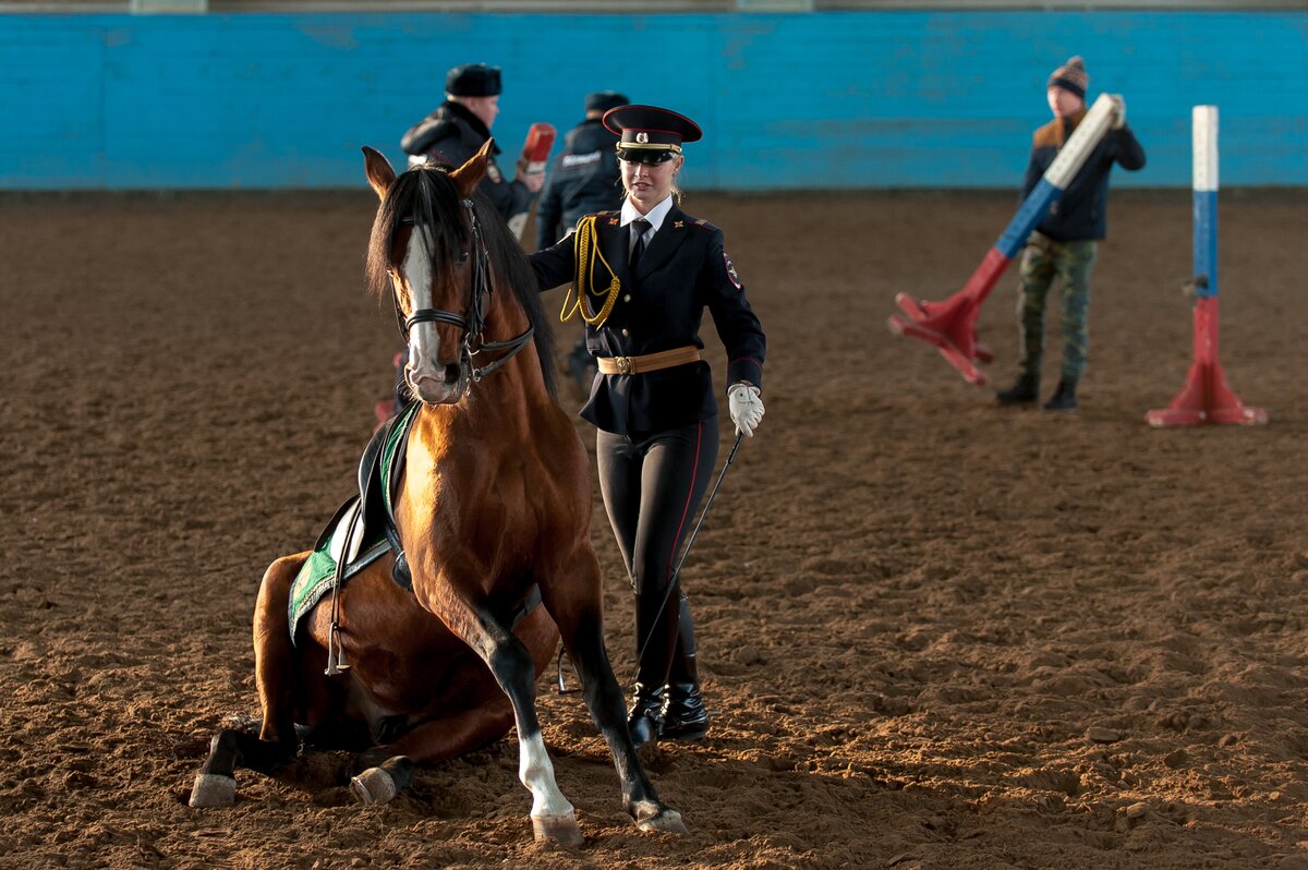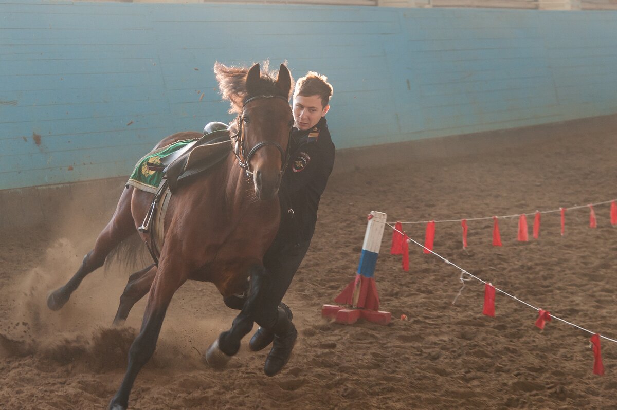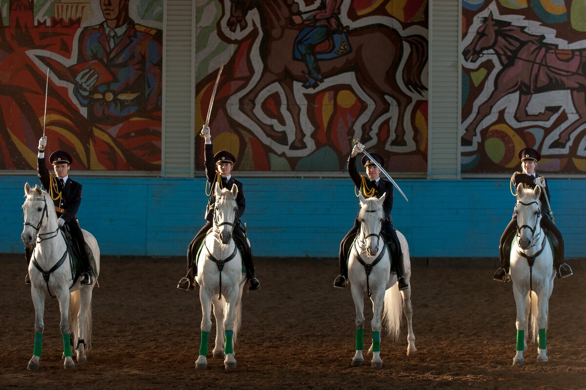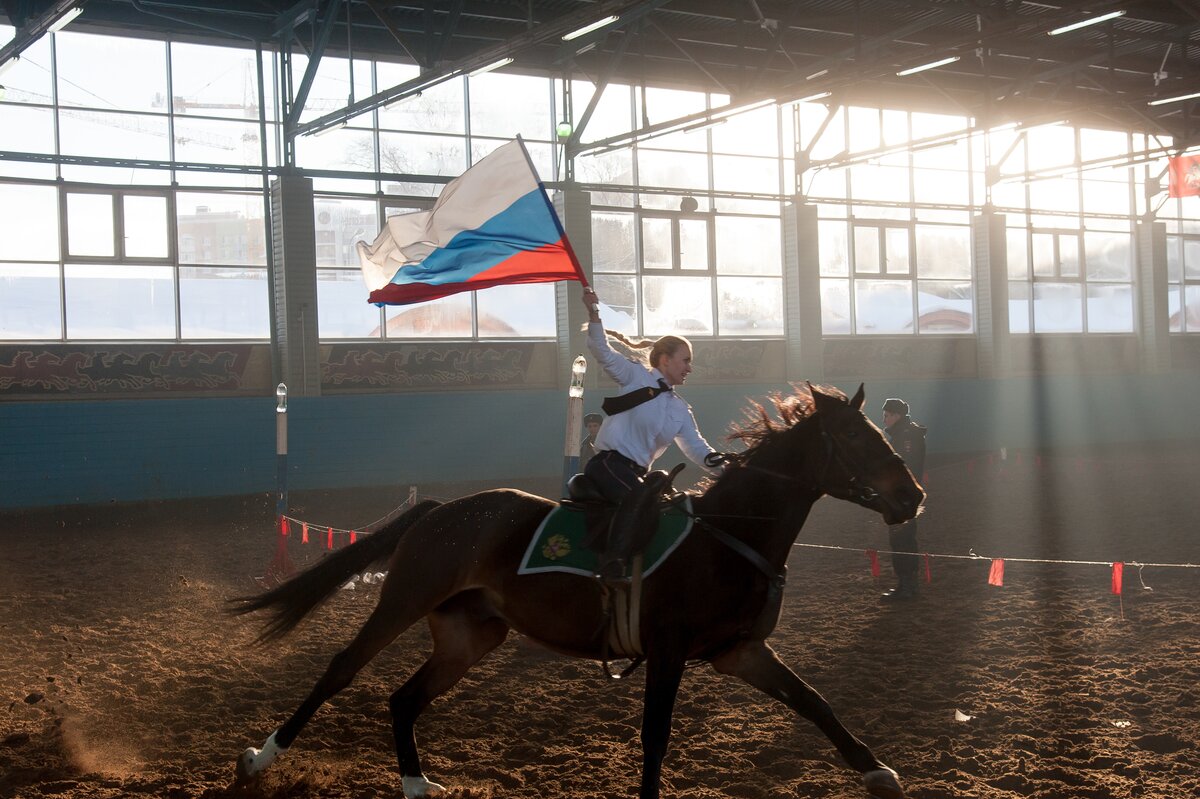 В манеже сотрудники первого Оперативного полка продемонстрировали навыки профессионального мастерства по различным видам конно-строевой подготовки и военно-прикладному конному искусству. Как это было, смотрите в фоторепортаже сетевого издания m24.ru