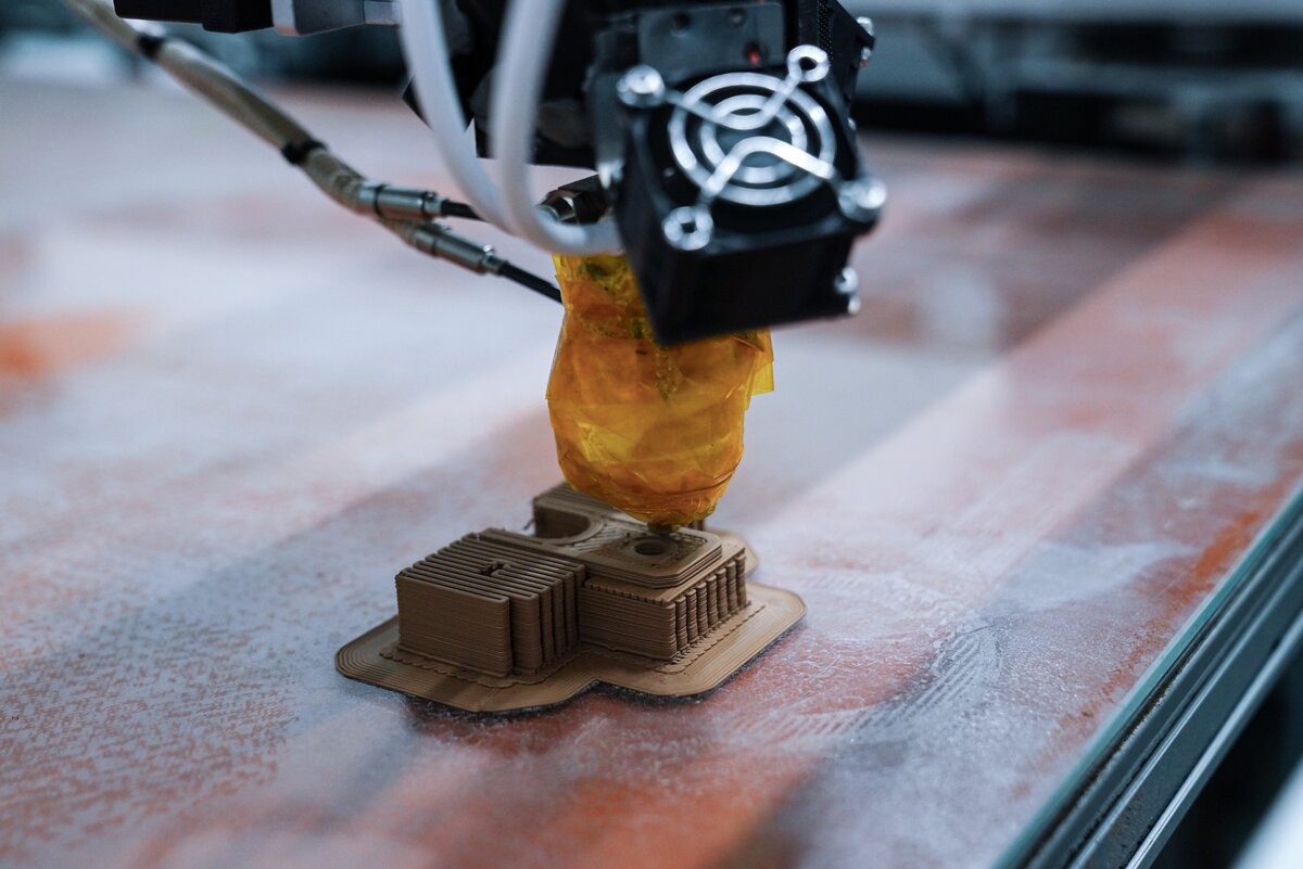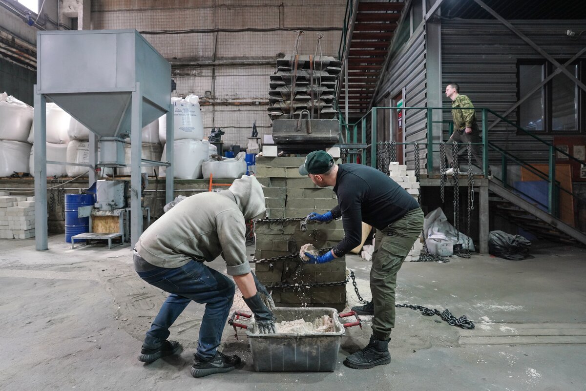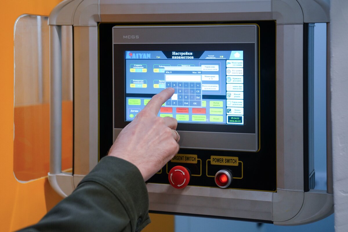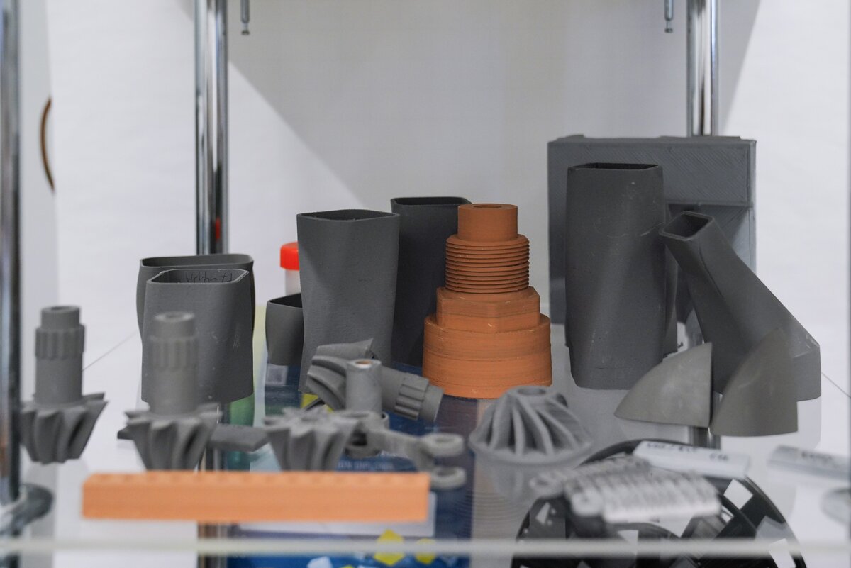 В мастерской с промышленным роботом гости увидели процесс создания скульптур и архитектурных форм по 3D-данным. Технология позволяет сократить сроки и ручной труд в 5–10 раз. После акселерации в "Академии инноваторов" команда получила крупный заказ от Театра Российской армии на изготовление декораций.