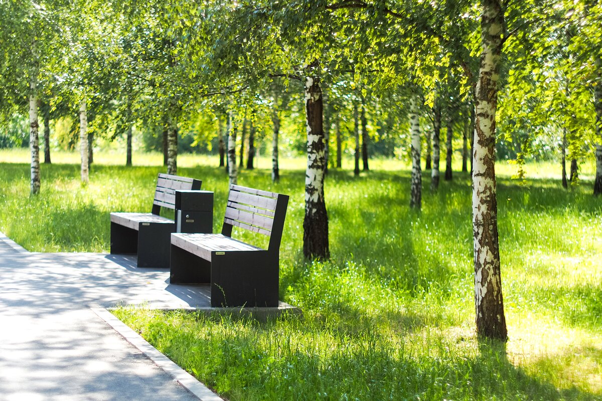 По обновленному парку можно гулять часами! А для тех, кто устал ходить и хочет немного передохнуть, установили удобные лавочки и урны.