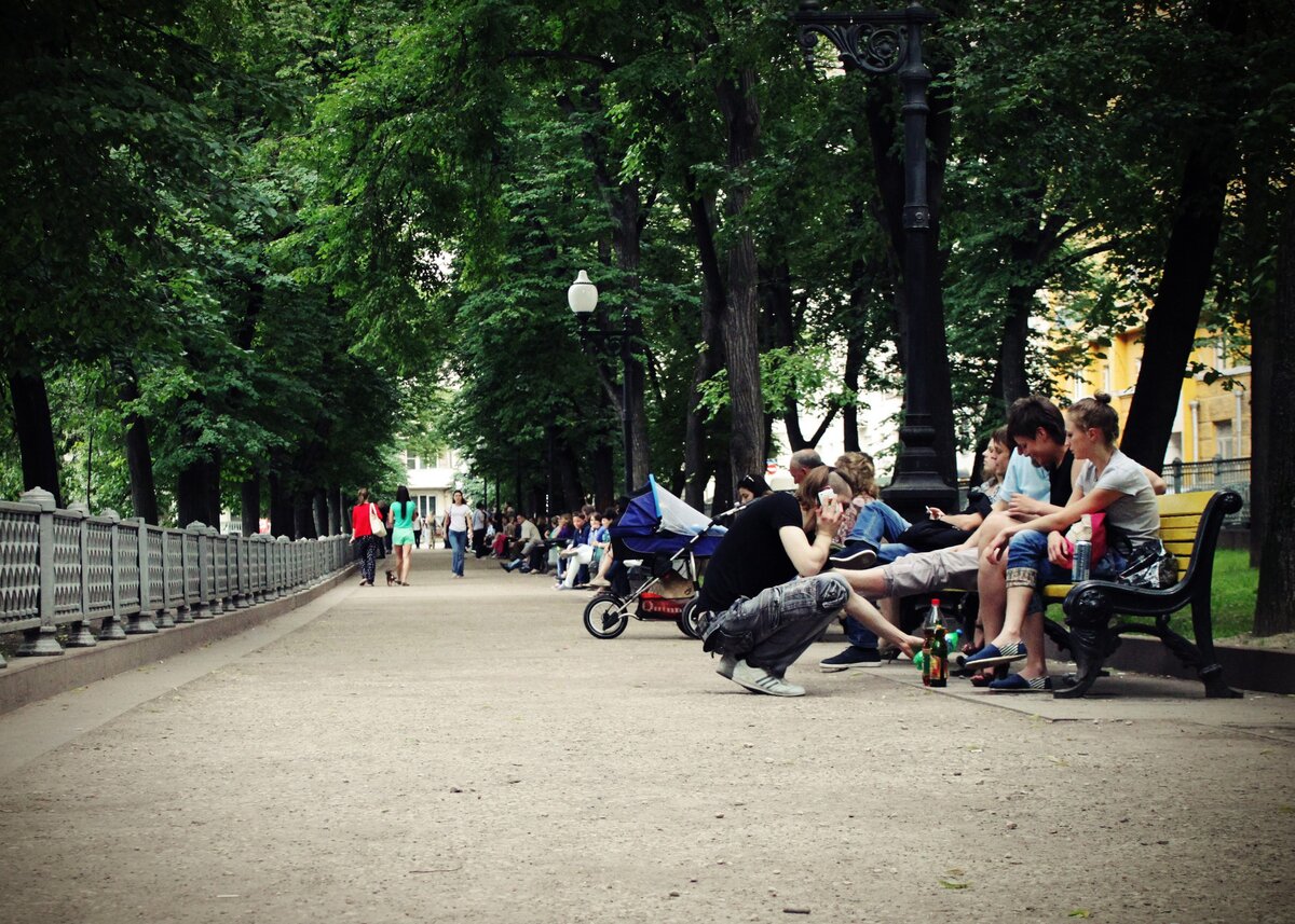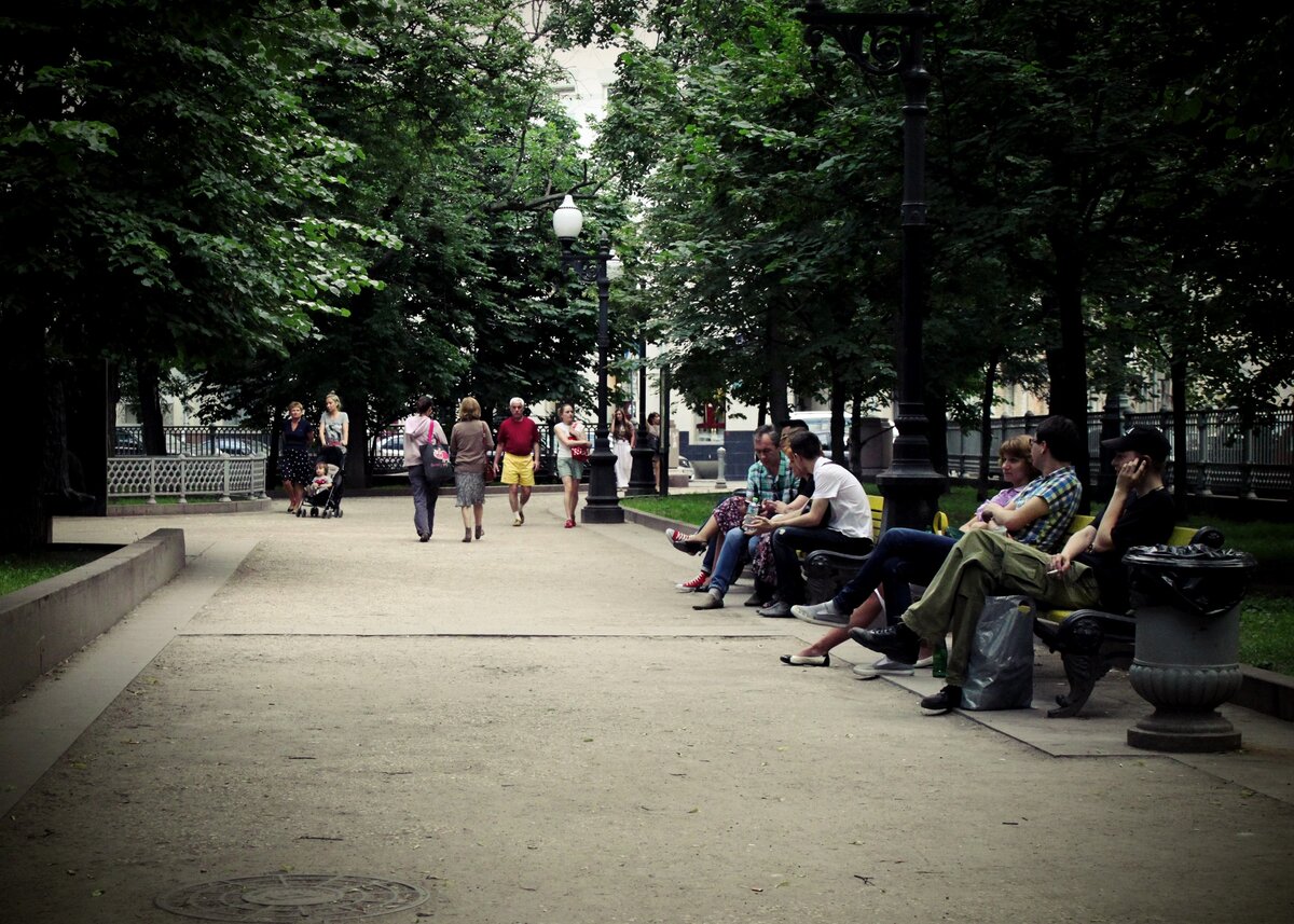 На одной из этих скамеек произошел известный "разговор на Патриарших прудах"