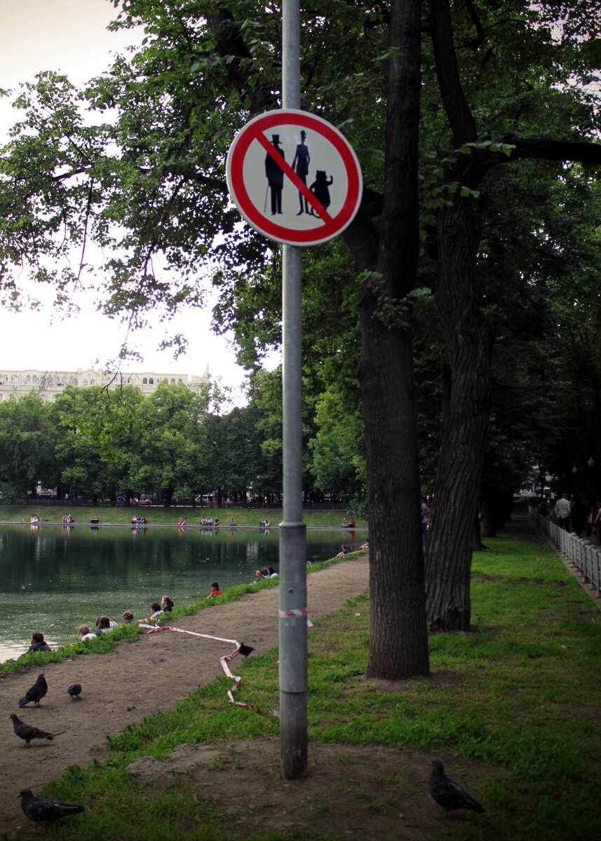 Вид с противоположного берега на аллею, где впервые появился Воланд с компанией. Именно там установлен знак 2/23Вид с противоположного берега на аллею, где впервые появился Воланд с компанией. Именно там установлен знак