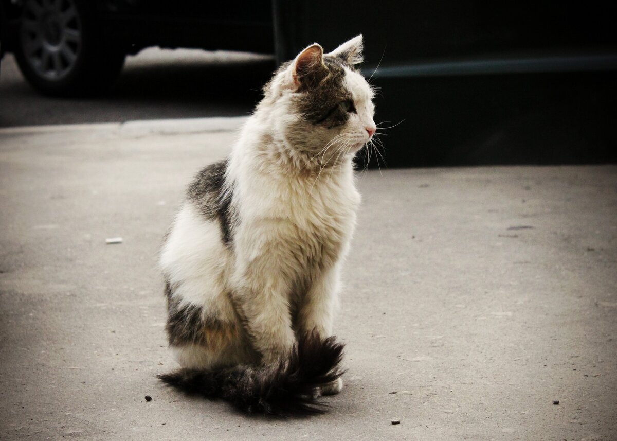 Около переулка в музей Булгакова встретился кот: спокойный, не пугливый и очень крупный