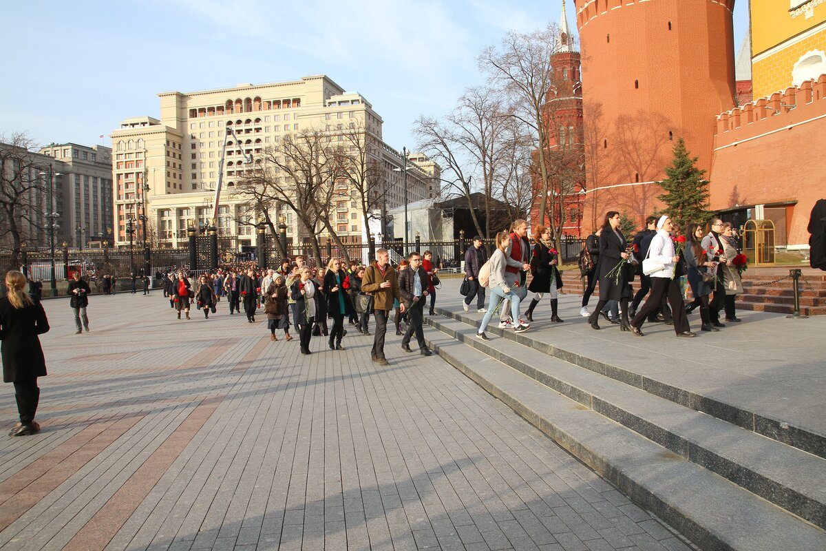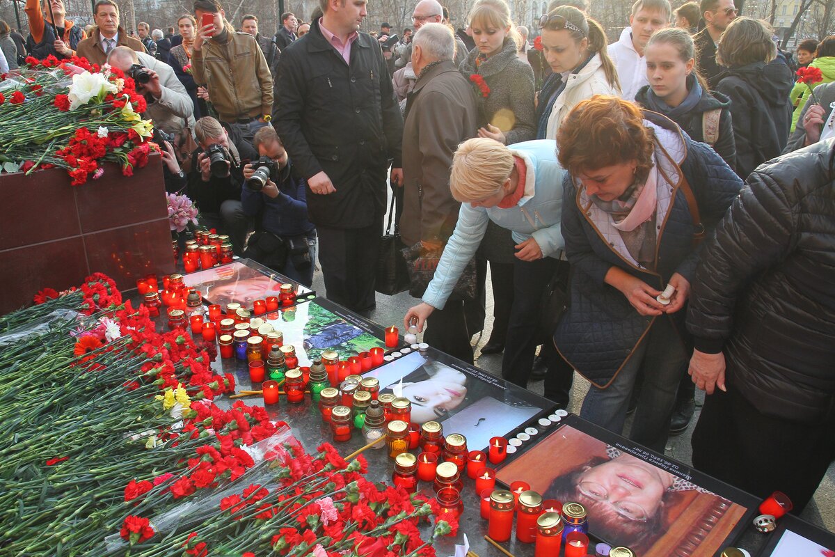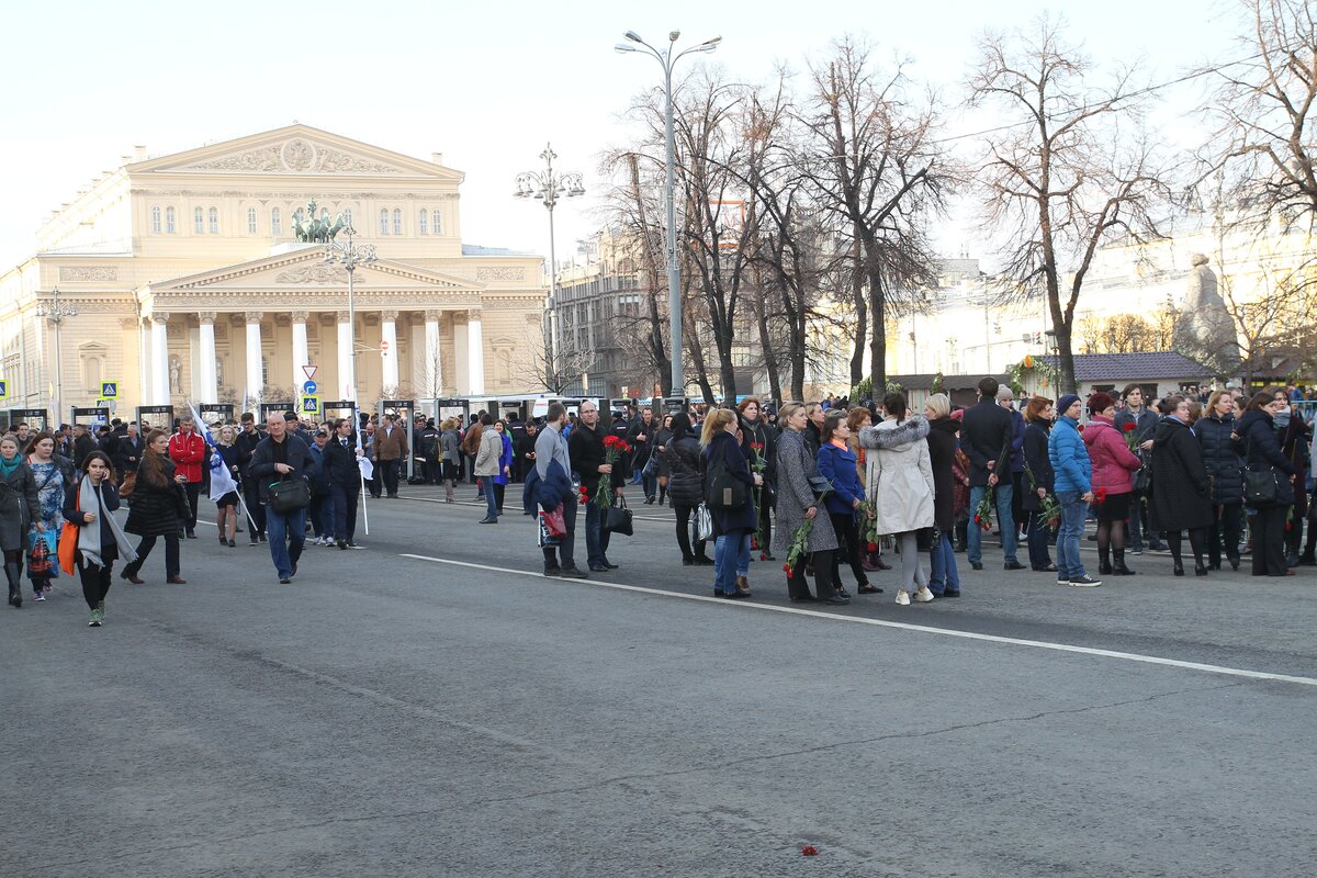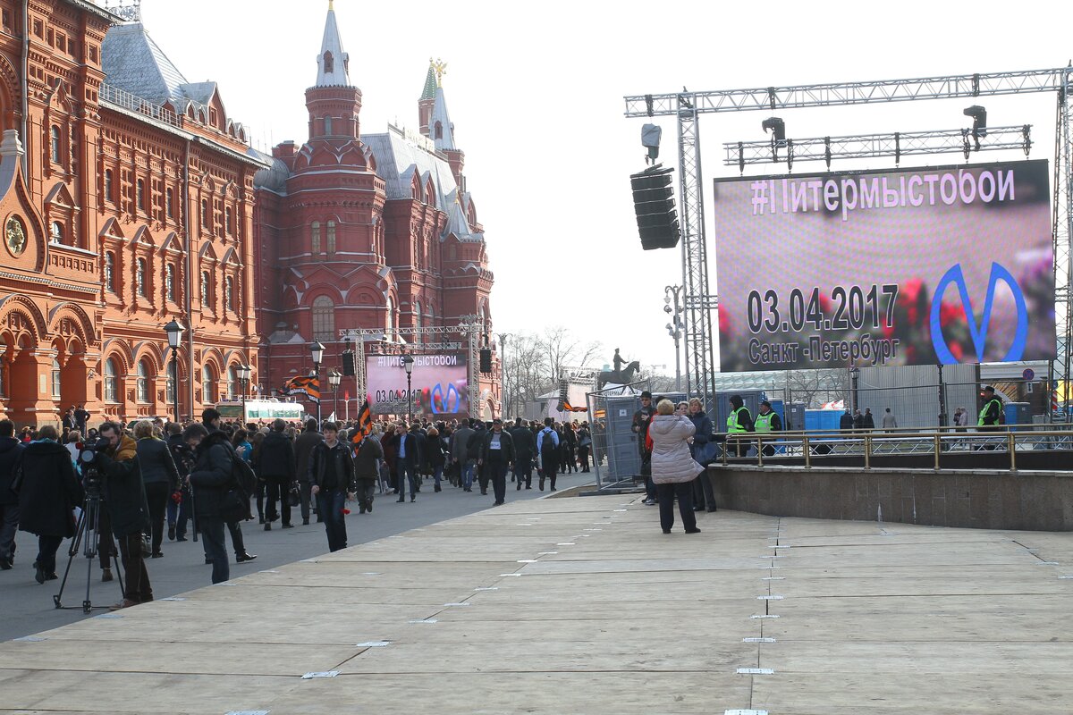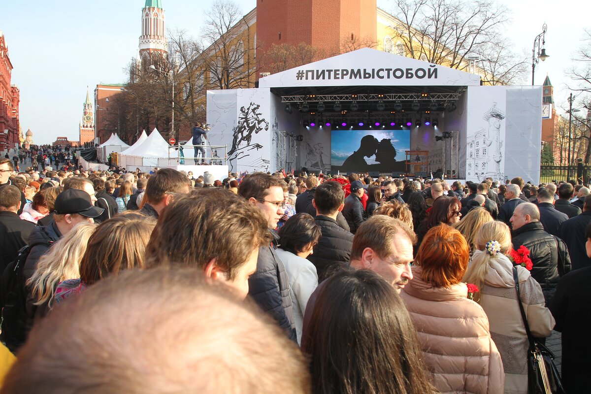 Акция памяти "Питер – мы с тобой!" прошла на Манежной площади в Москве. В ней приняли участие более 50 тысяч человек.