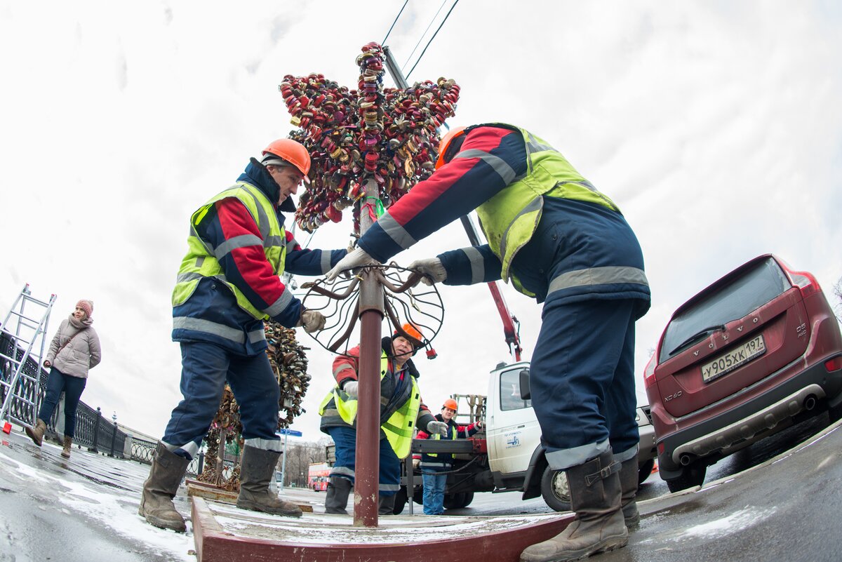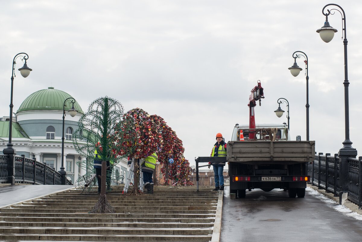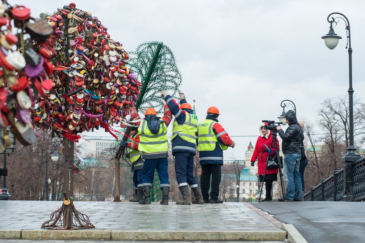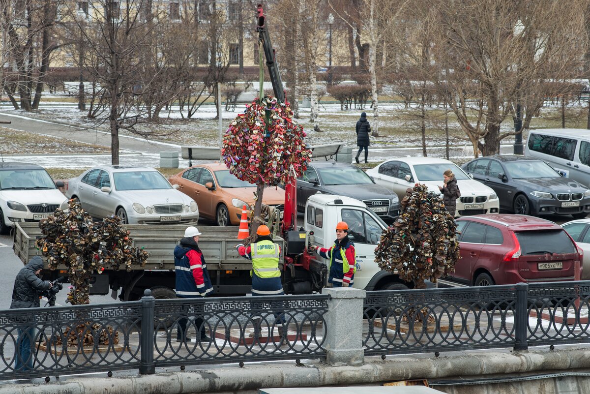 Экология"Деревья любви" с Лужкова моста перенесли на набережную